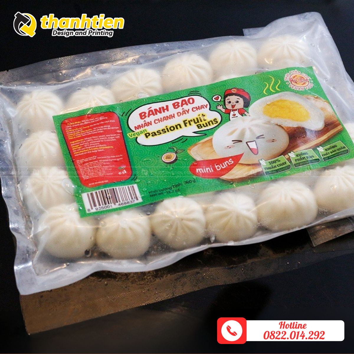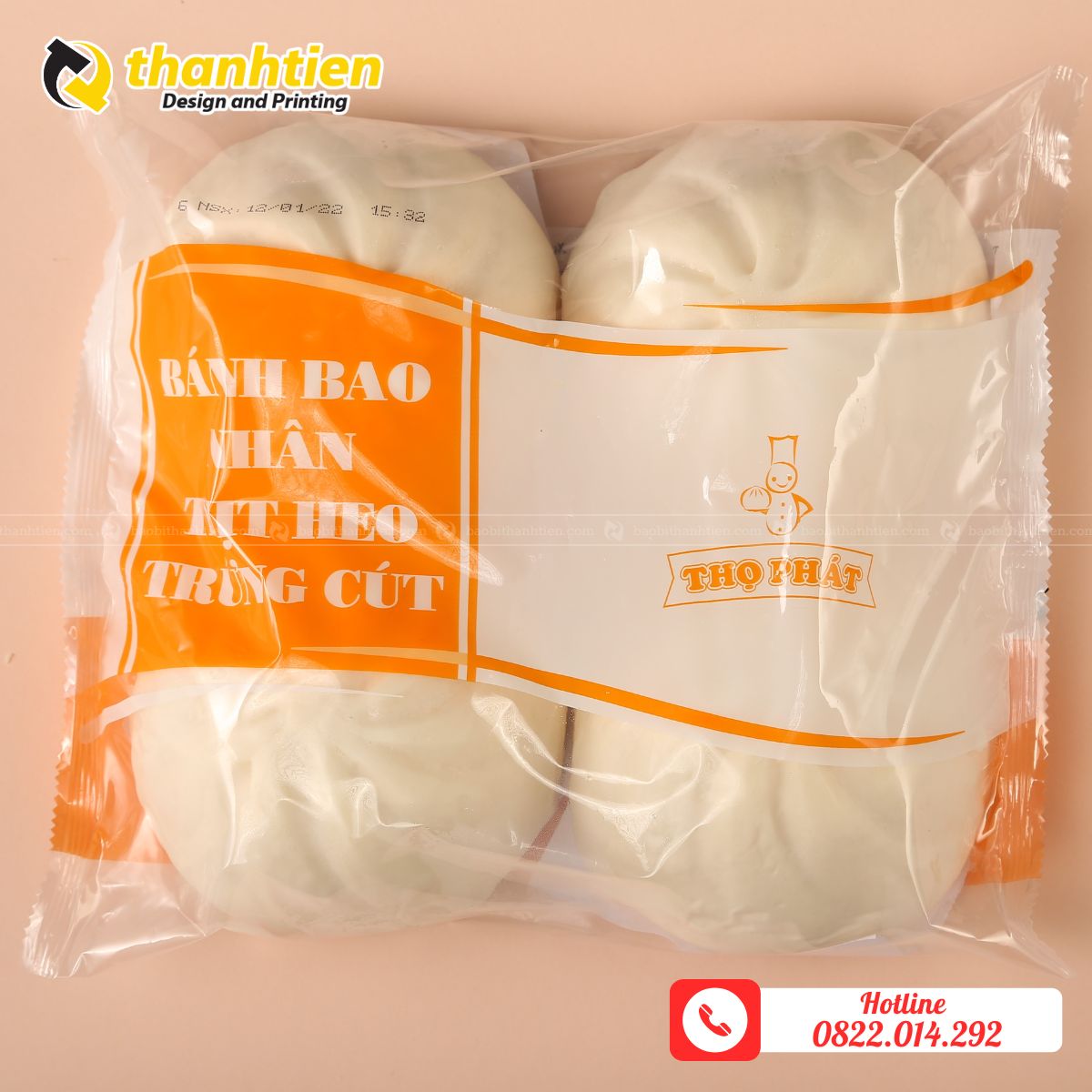 - Thiết kế bắt mắt: Với công nghệ in trục đồng, bao bì bánh bao được in ấn sắc nét với logo, thông tin sản phẩm và hình ảnh minh họa, giúp tăng độ nhận diện thương hiệu.