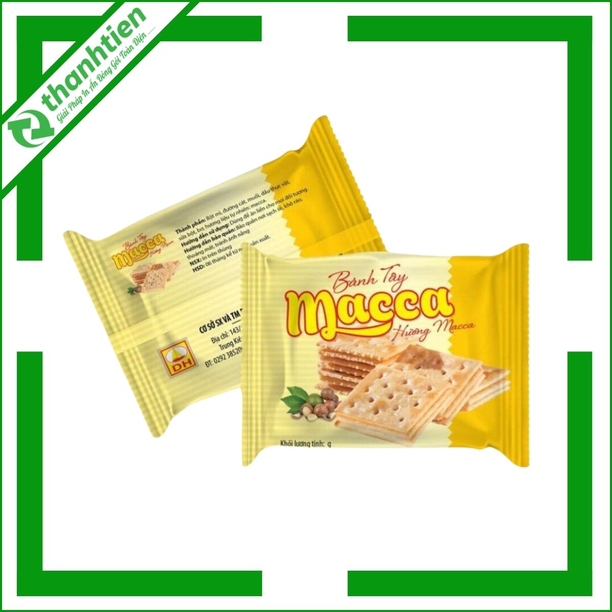 - Chất lượng sản phẩm: Bao Bì Thành Tiến sản xuất bao bì đựng bánh quy từ chất liệu màng ghép phức hợp in trục ống đồng, đảm bảo độ bền, chống ẩm, chống oxy hóa, bảo quản hương vị và an toàn vệ sinh thực phẩm.