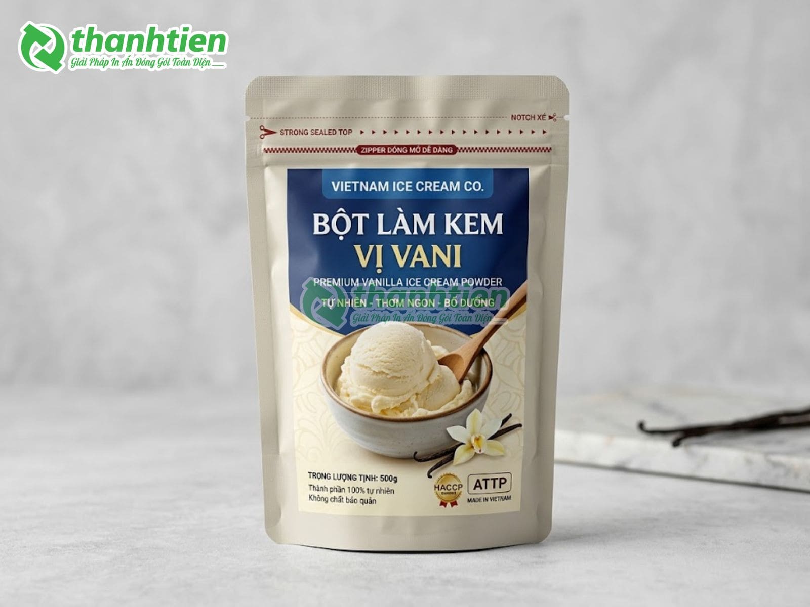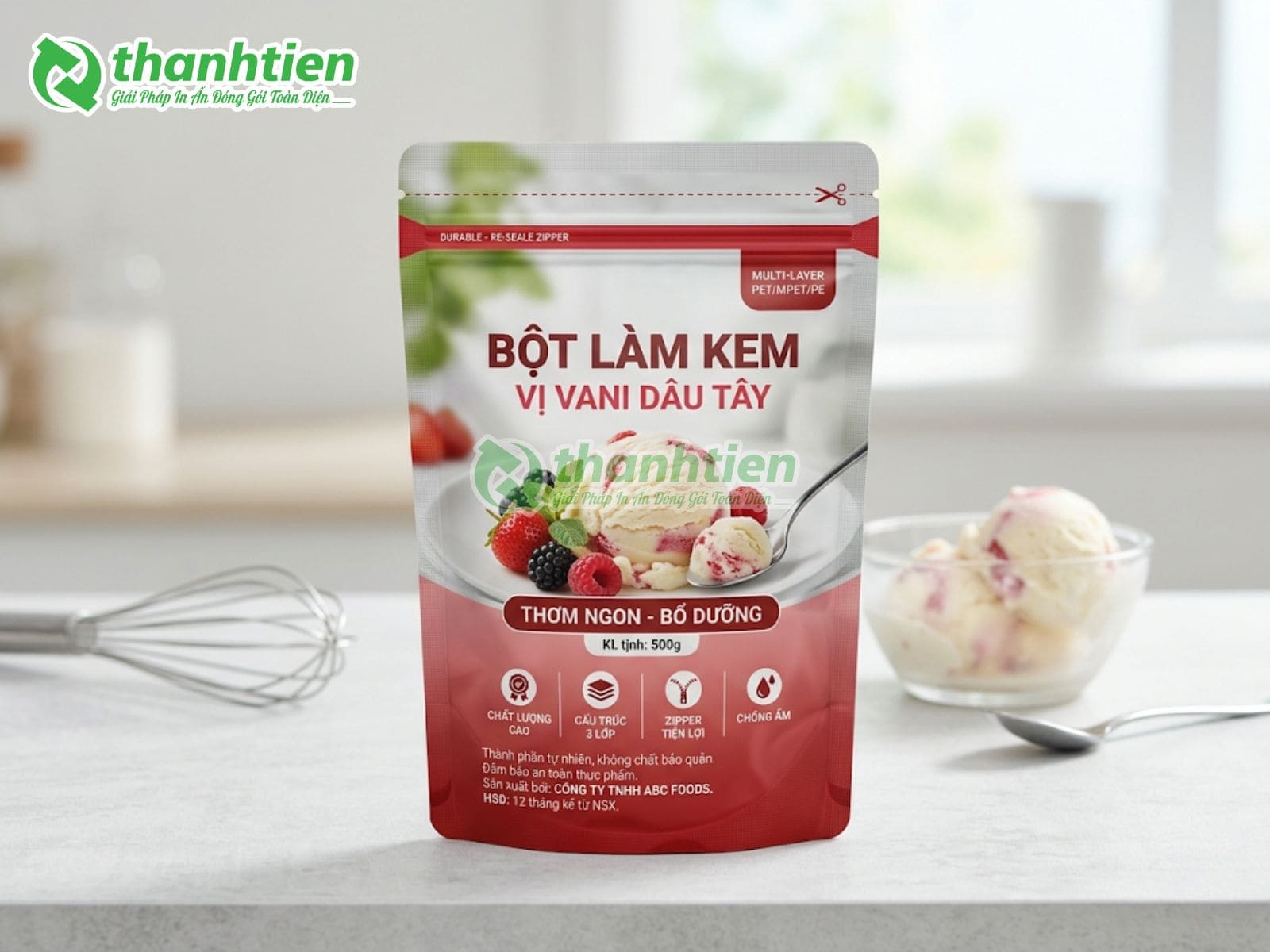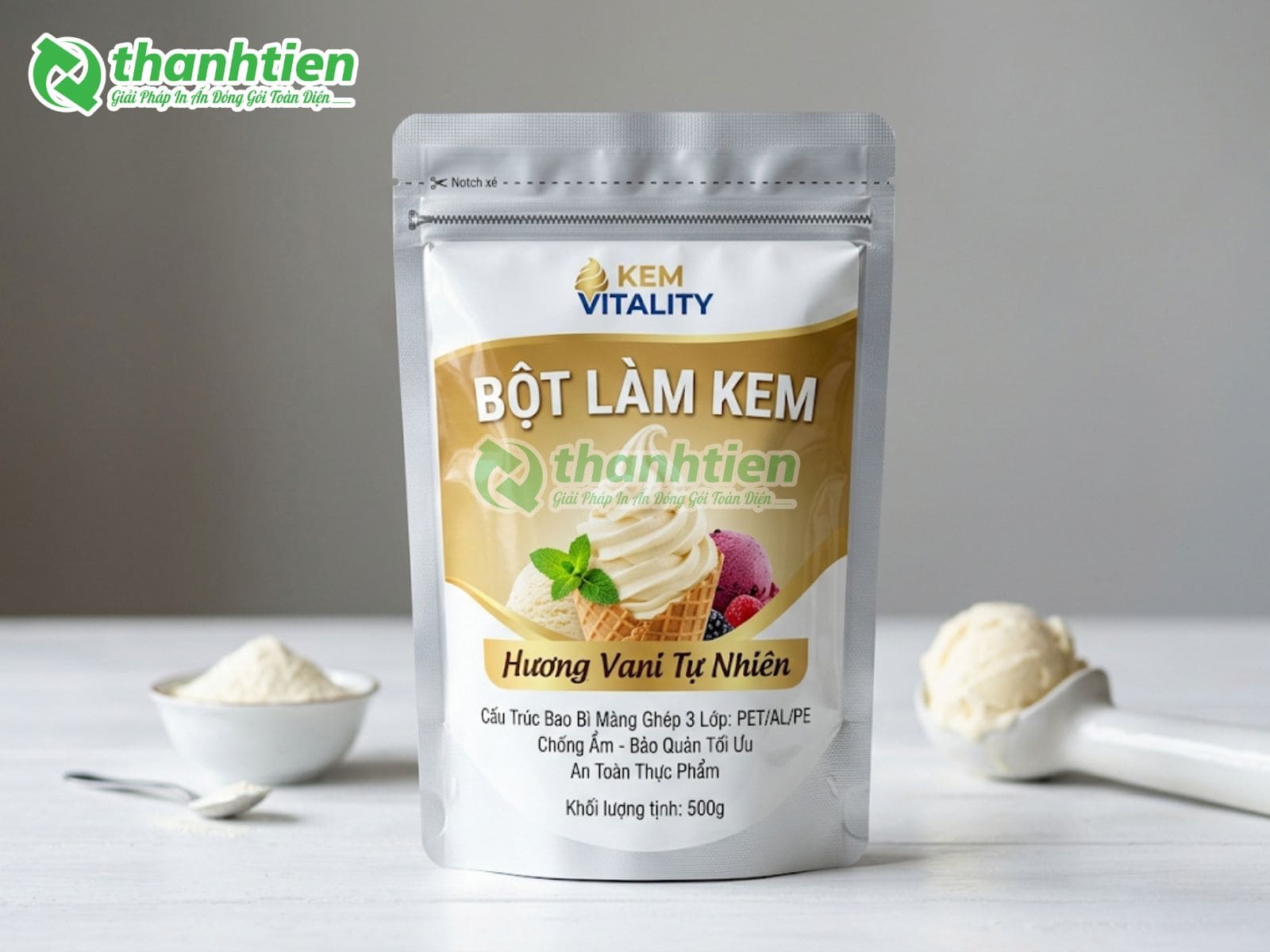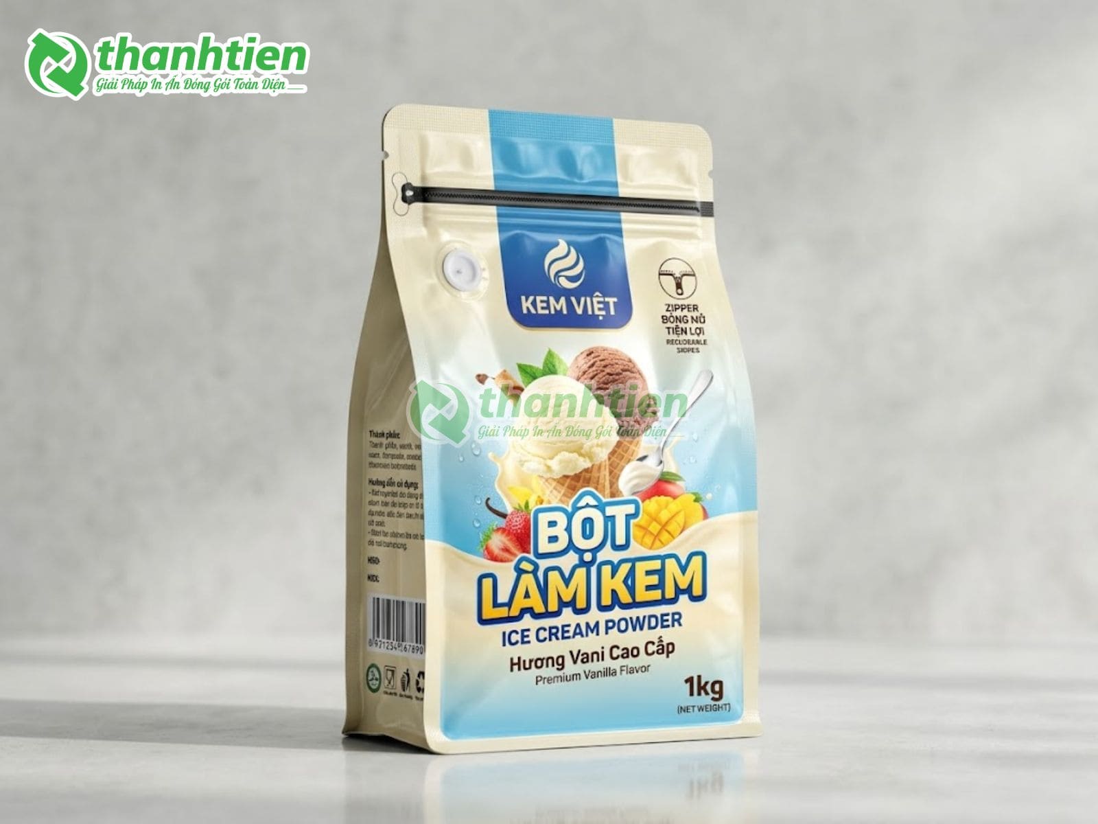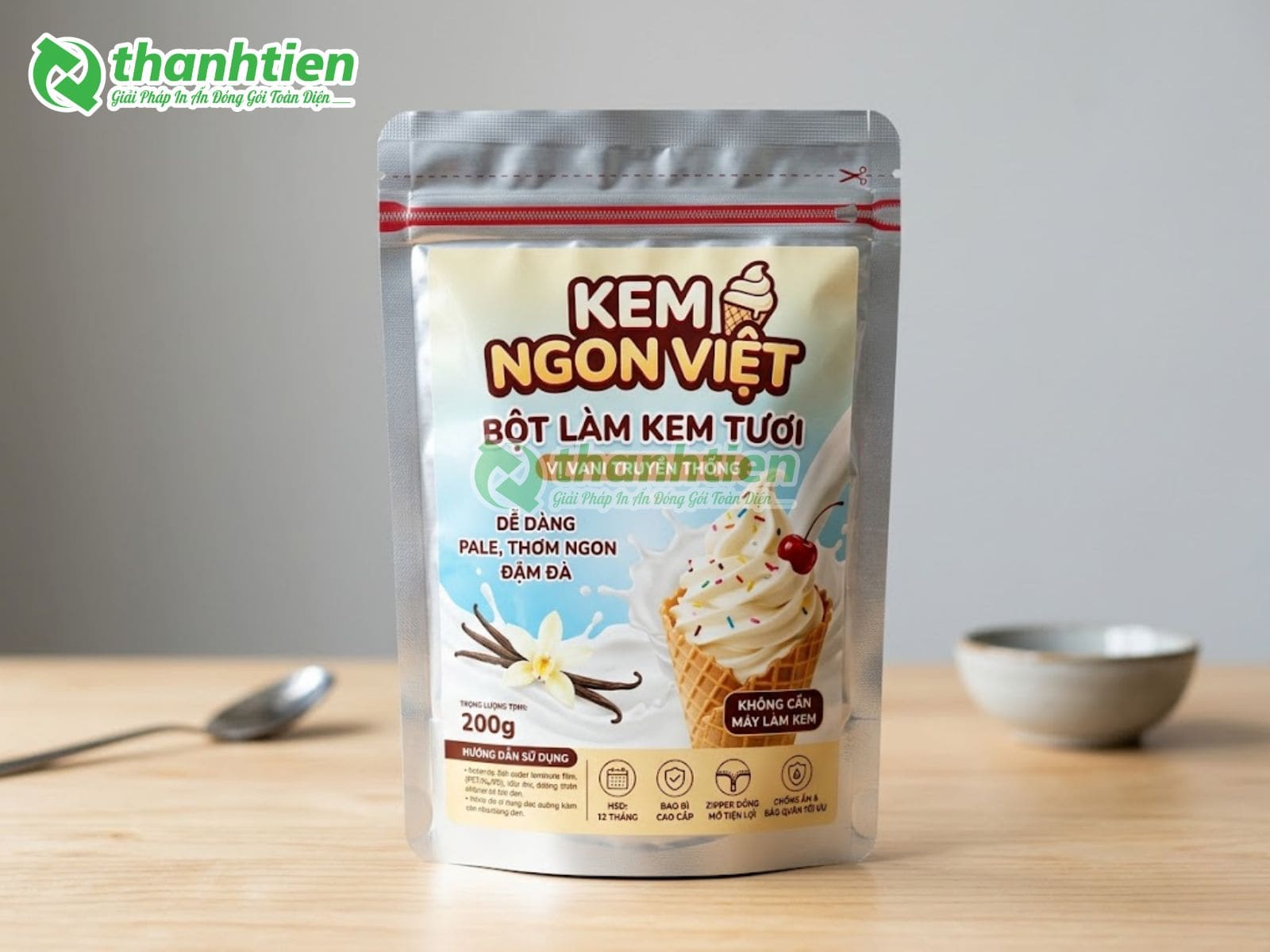 Bao bì túi đựng bột làm kem in ấn đẹp