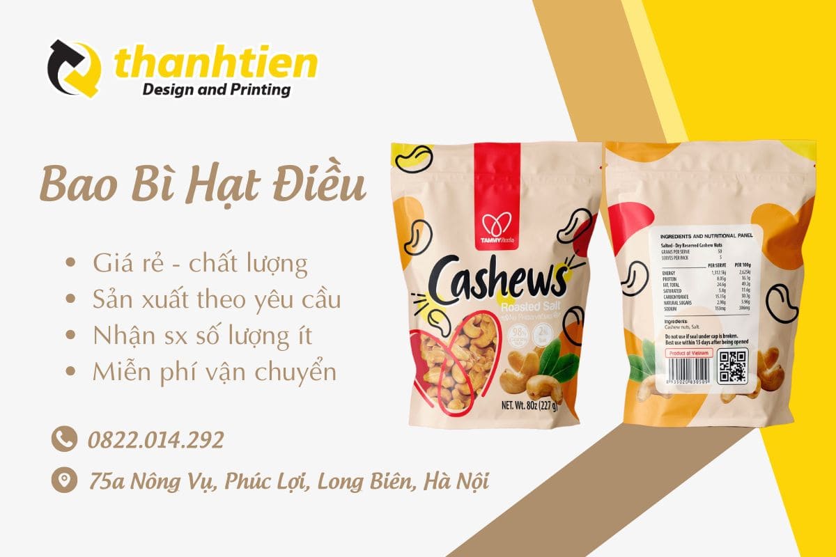 Hãy để Bao Bì Thành Tiến đồng hành cùng bạn trong việc nâng tầm thương hiệu hạt điều. Gọi ngay số hotline để nhận báo giá ưu đãi và đặt hàng với giá sỉ tốt nhất!