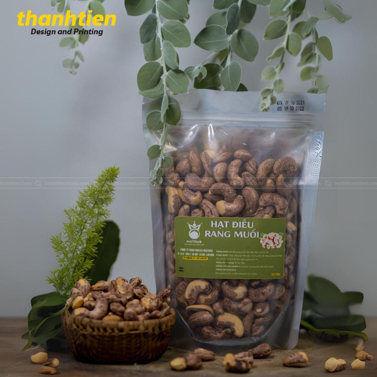 - MPET/AL: Lớp nhôm hoặc mạ nhôm tăng độ bền, chống thẩm thấu khí và giữ hương vị hạt điều không bị gắt dầu.