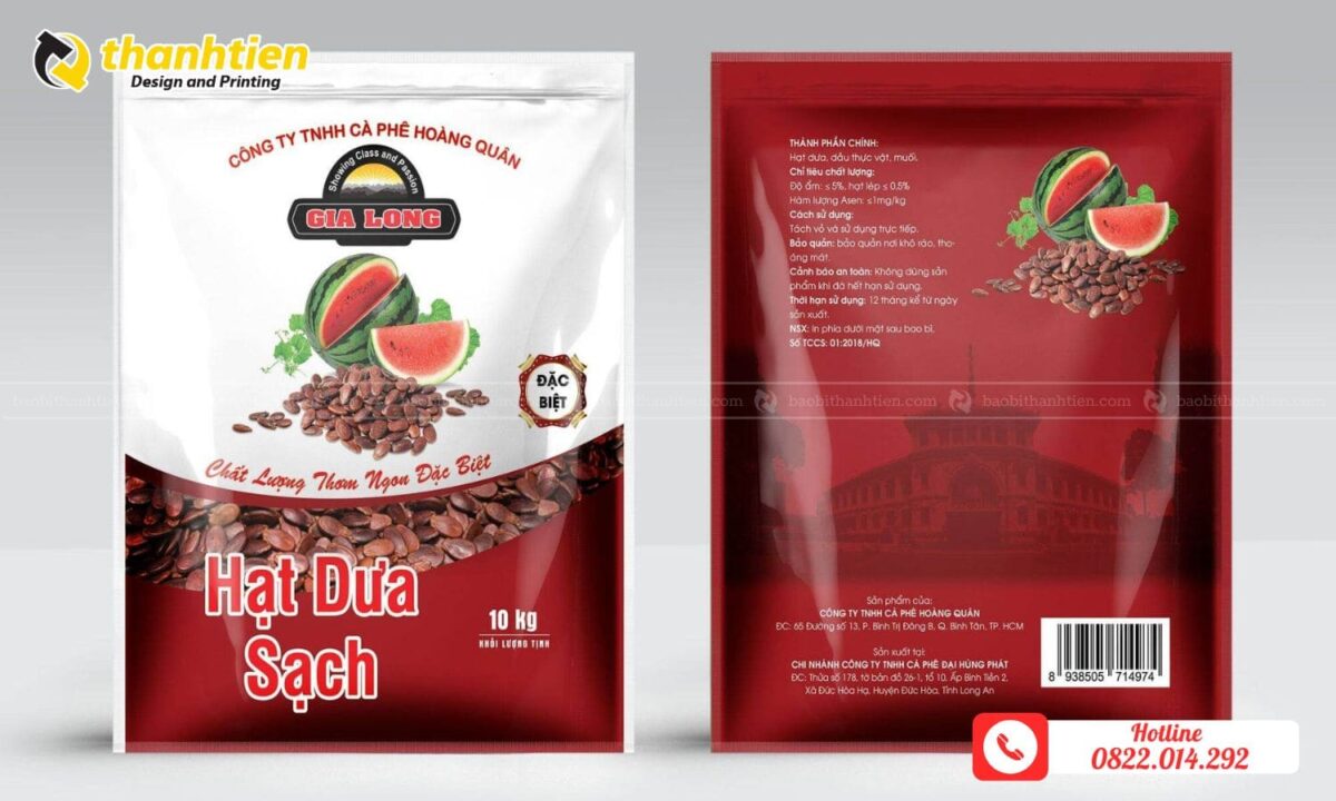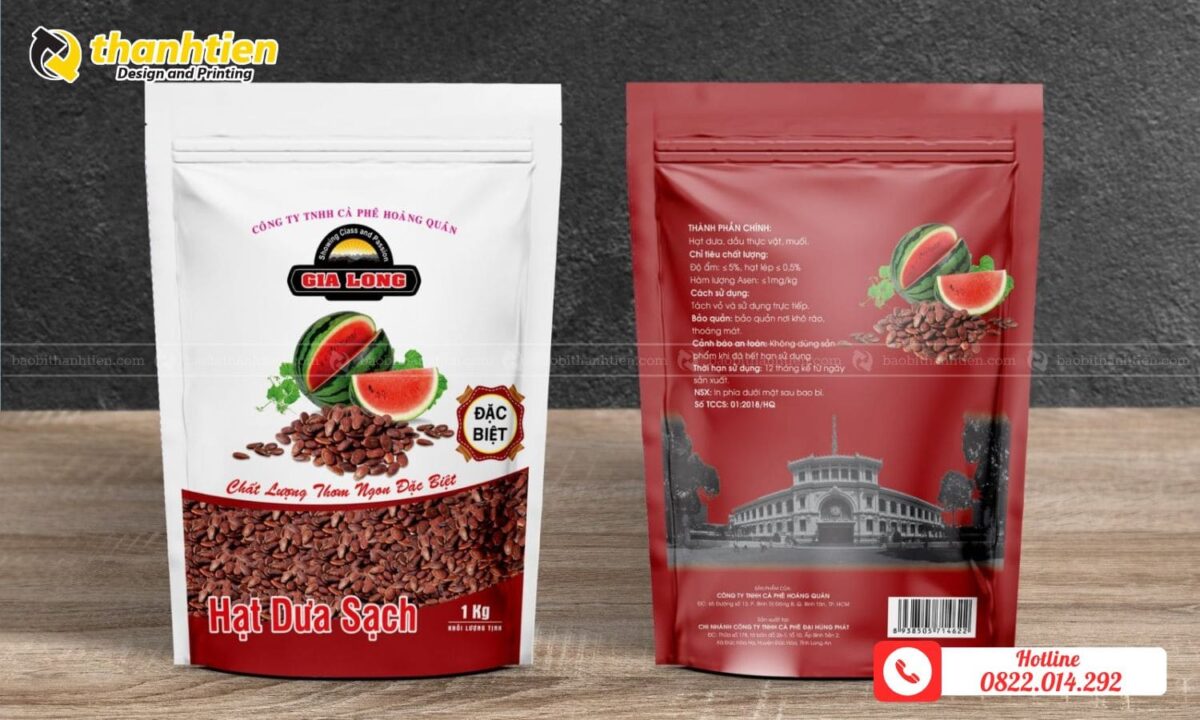 Bao bì hạt dưa là loại túi chuyên dụng được thiết kế để bảo vệ hạt dưa khỏi các yếu tố môi trường như độ ẩm, không khí và ánh sáng, đảm bảo hạt luôn giữ được độ giòn, hương vị thơm ngon và chất lượng tối ưu. Túi đựng hạt dưa không chỉ là lớp vỏ bảo vệ mà còn là công cụ quảng bá thương hiệu hiệu quả nhờ thiết kế độc đáo, bắt mắt.
