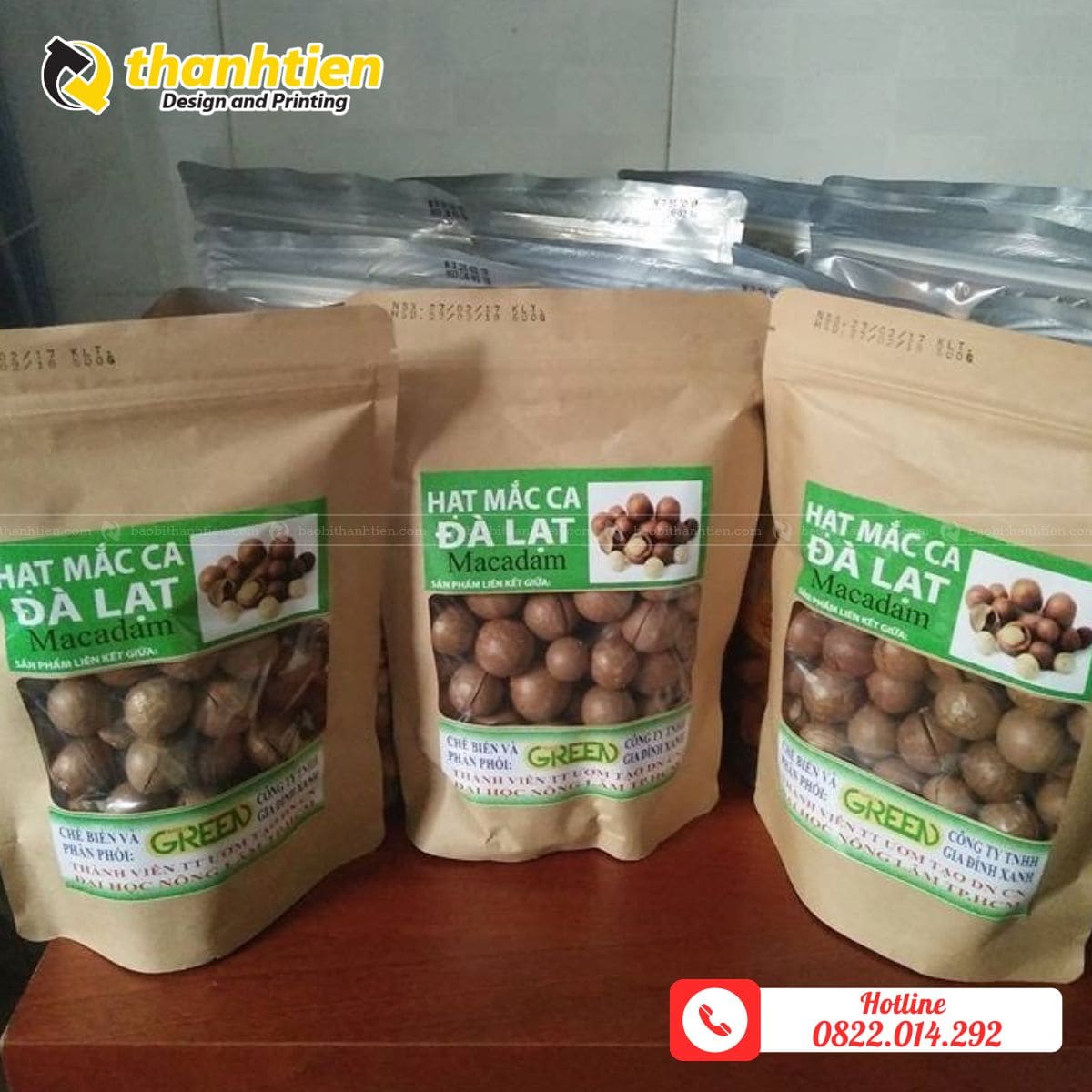 Chất liệu an toàn, công nghệ in ống đồng tiên tiến giúp bao bì hạt macca của Thành Tiến nổi bật, bền đẹp và bảo quản sản phẩm tối ưu. Ngoài bao bì hạt macca, chúng tôi còn sản xuất bao bì cho hạt điều, óc chó, hạnh nhân, đáp ứng nhu cầu đóng gói đa dạng. Chính sách đổi trả rõ ràng và hỗ trợ 24/7 đảm bảo sự hài lòng cho khách hàng. Hãy chọn Bao Bì Thành Tiến để nâng tầm thương hiệu của bạn với chi phí hợp lý.