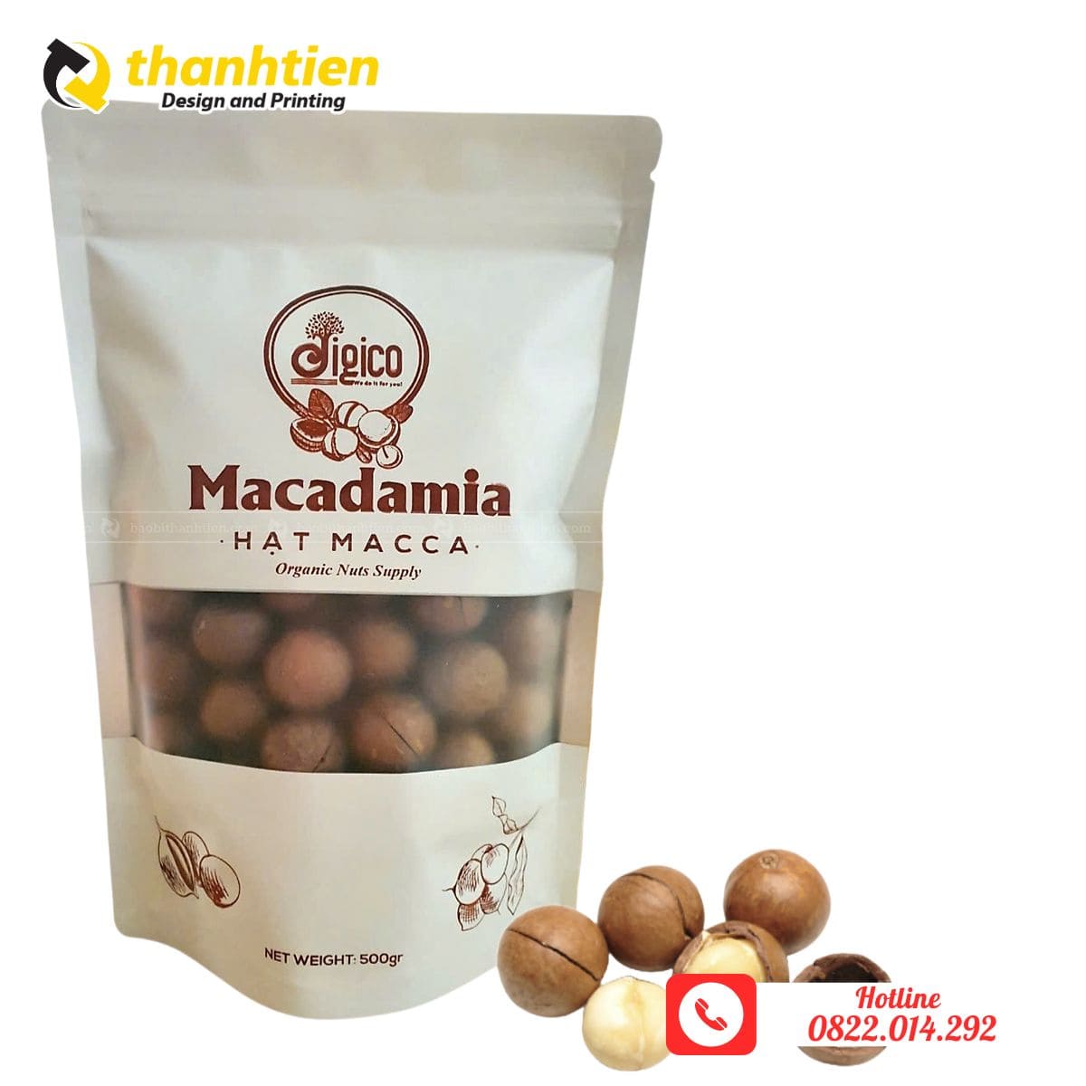 Túi zip đựng hạt macca bằng trục in ống đồng