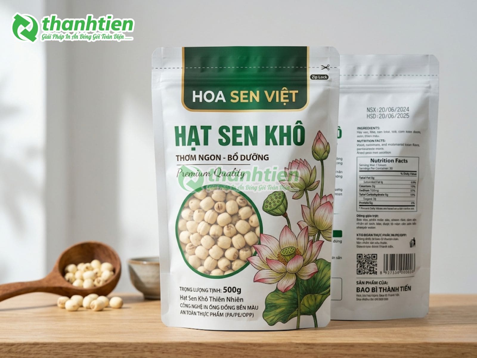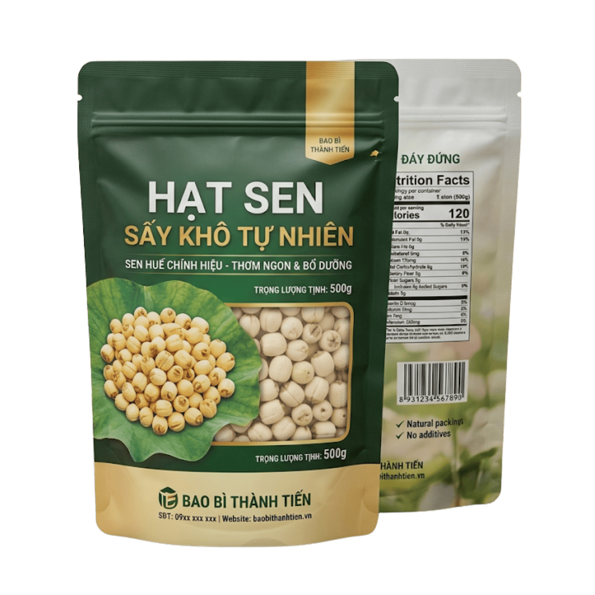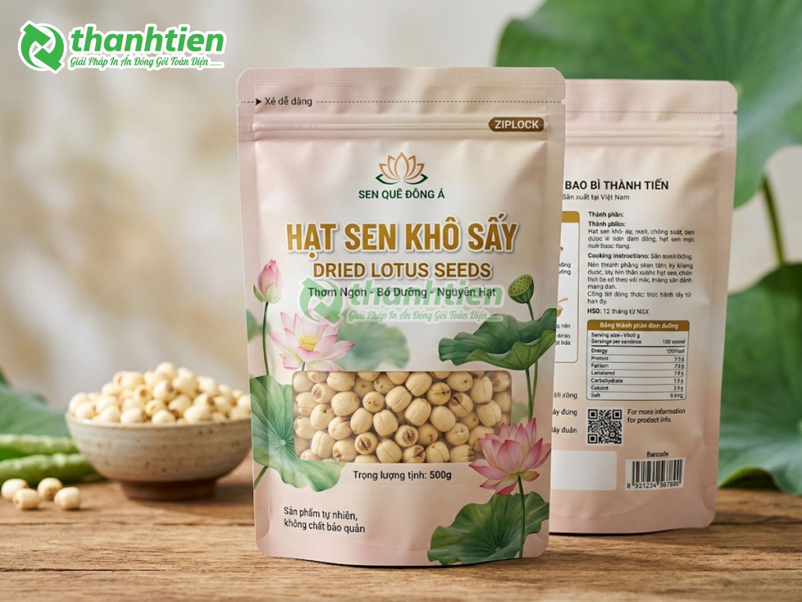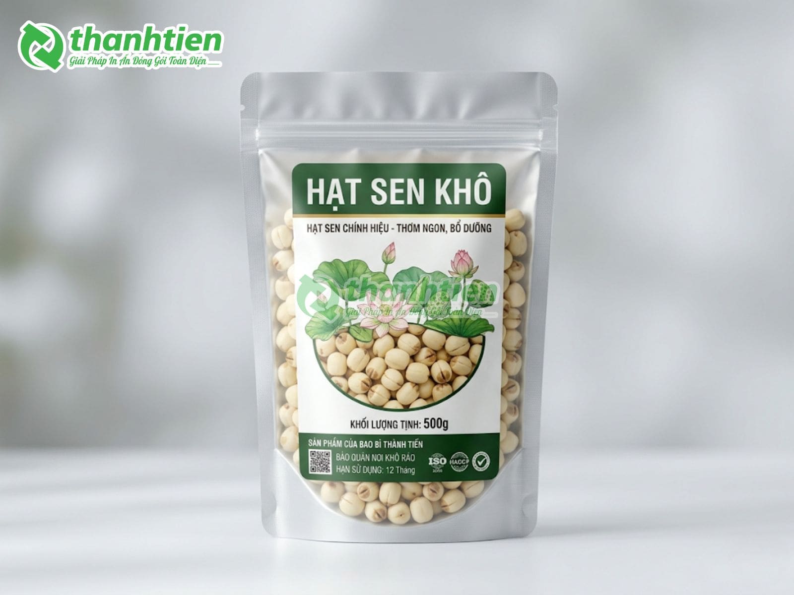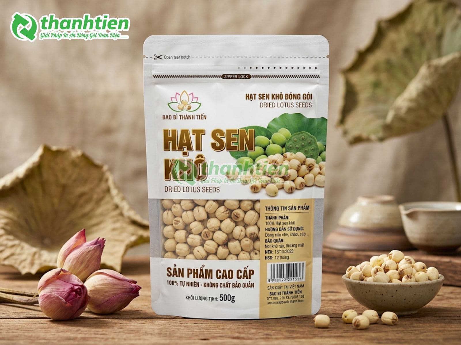 Bên cạnh đó, bao bì với thiết kế đẹp mắt kết hợp thông tin rõ ràng giúp tăng sức hút thị giác, tạo cảm giác cao cấp cho sản phẩm hạt sen. Nhiều khách hàng đánh giá cao bao bì in ấn chuyên nghiệp vì nó góp phần nâng tầm giá trị sản phẩm, dễ dàng phân biệt với hàng trôi nổi trên thị trường. Đây chính là lý do bao bì hạt sen của Bao Bì Thành Tiến luôn được các cơ sở sản xuất hạt sen, cửa hàng nông sản và doanh nghiệp xuất khẩu tin dùng.