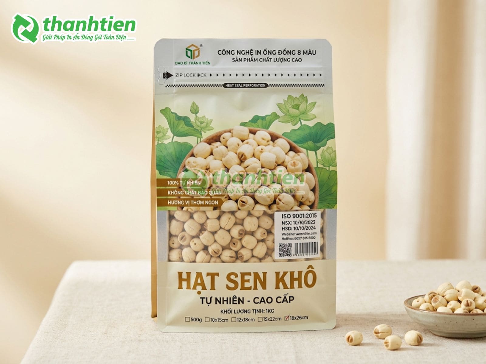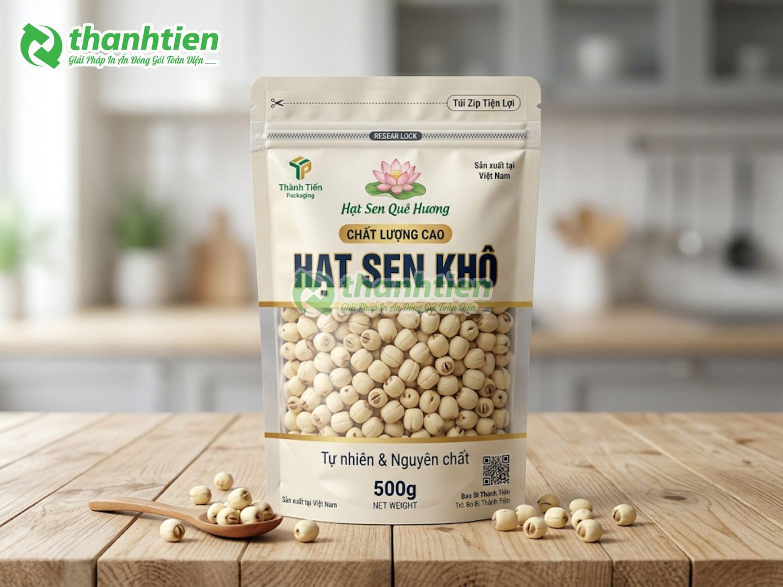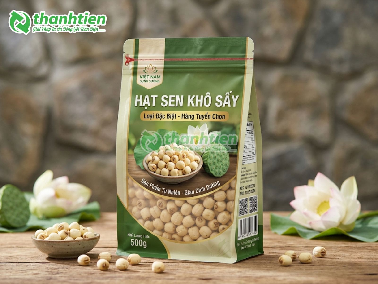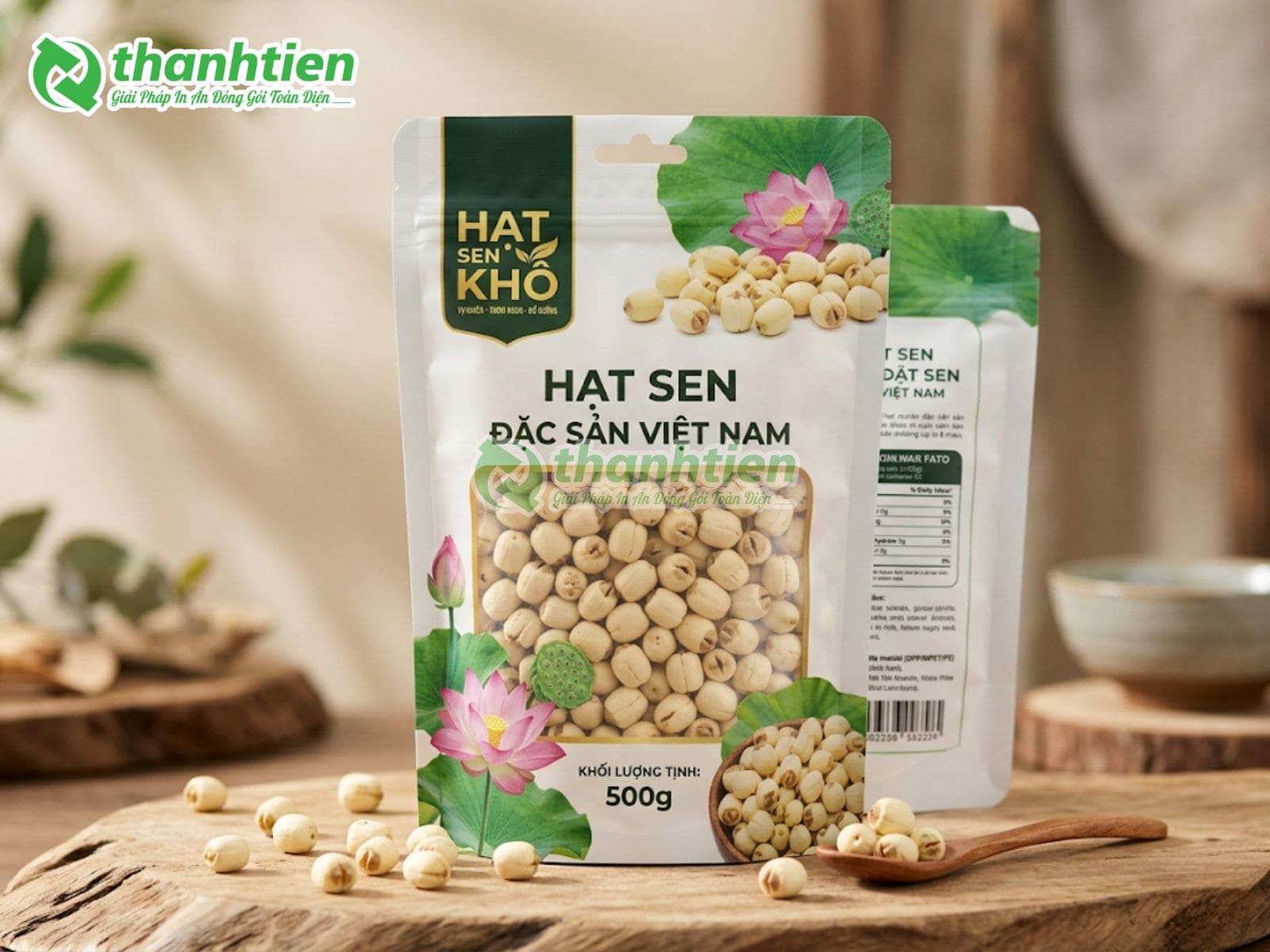 Bên cạnh đó, bao bì với thiết kế đẹp mắt kết hợp thông tin rõ ràng giúp tăng sức hút thị giác, tạo cảm giác cao cấp cho sản phẩm hạt sen. Nhiều khách hàng đánh giá cao bao bì in ấn chuyên nghiệp vì nó góp phần nâng tầm giá trị sản phẩm, dễ dàng phân biệt với hàng trôi nổi trên thị trường. Đây chính là lý do bao bì hạt sen của Bao Bì Thành Tiến luôn được các cơ sở sản xuất hạt sen, cửa hàng nông sản và doanh nghiệp xuất khẩu tin dùng.