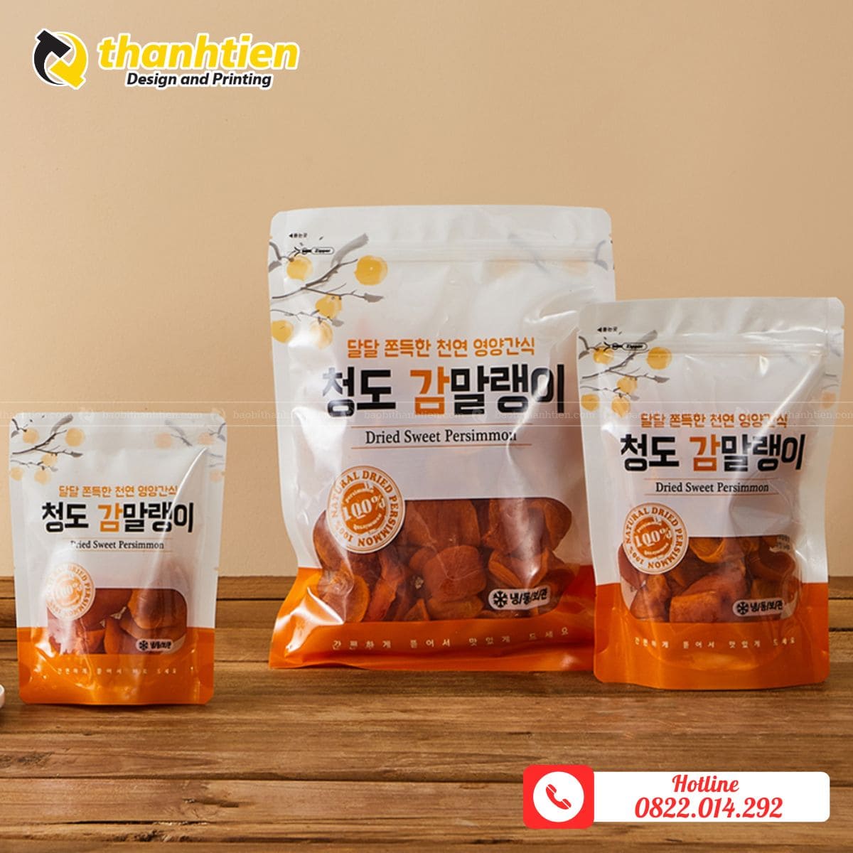 Bao bì đựng hồng sấy dẻo đầy đủ kích thước
