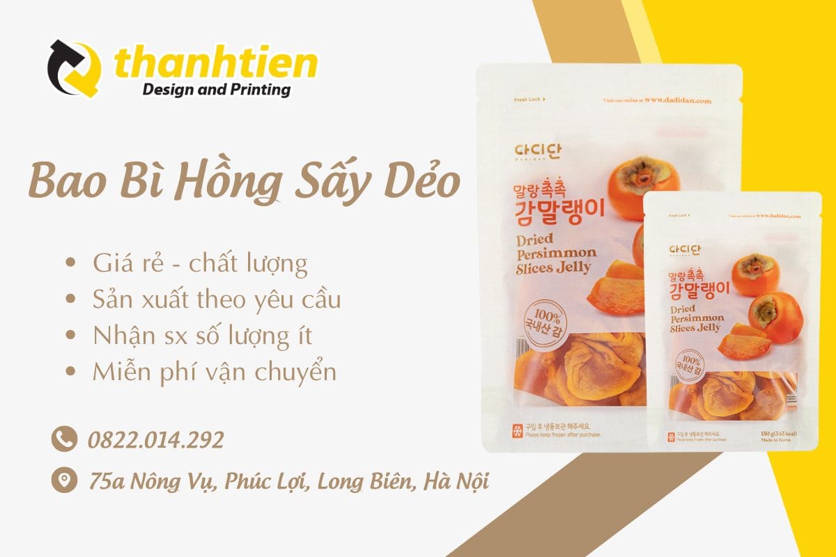 Bao Bì Thành Tiến là xưởng sản xuất chuyên cung cấp các mẫu bao bì đóng gói hồng sấy dẻo giá rẻ, chất lượng cao, đáp ứng mọi nhu cầu của khách hàng.