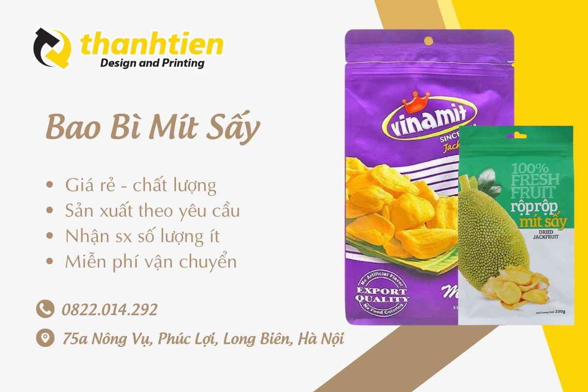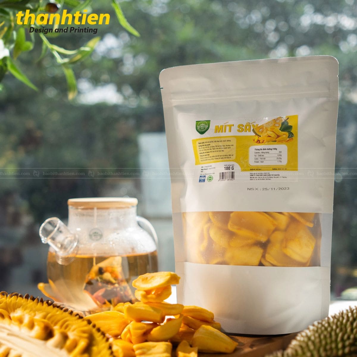 Mít sấy là một trong những món ăn vặt được ưa chuộng tại Việt Nam nhờ hương vị thơm ngon, giòn dẻo đặc trưng. Để bảo quản chất lượng sản phẩm và nâng tầm thương hiệu, bao bì mít sấy đóng vai trò vô cùng quan trọng. Trong bài viết này, chúng ta sẽ cùng tìm hiểu chi tiết về bao bì mít sấy, từ chất liệu, kích thước, thông tin in ấn đến tác dụng và các mẫu thiết kế đẹp mắt. Đặc biệt, nếu bạn đang tìm kiếm xưởng sản xuất và in bao bì mít sấy giá rẻ, chất lượng tại Hà Nội, Bao Bì Thành Tiến chính là lựa chọn hàng đầu dành cho bạn.