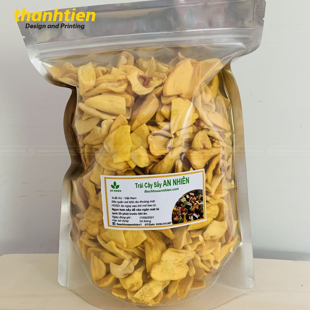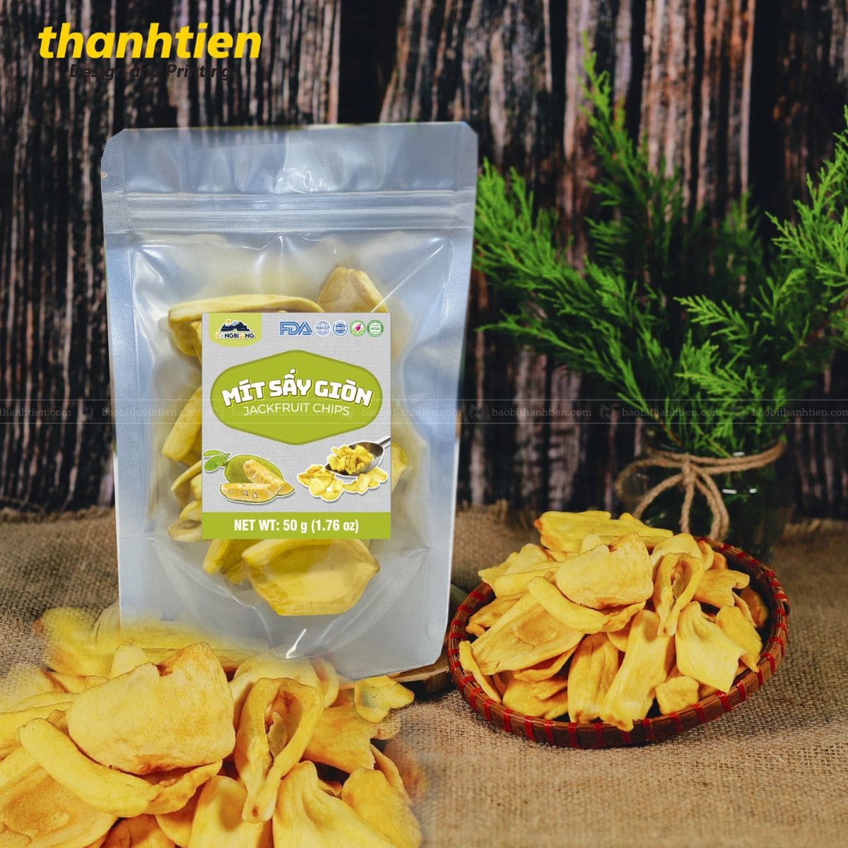 Túi màng ghép trong suốt: Cho phép nhìn thấy sản phẩm bên trong, thích hợp với mít sấy dẻo, tạo cảm giác ngon mắt.