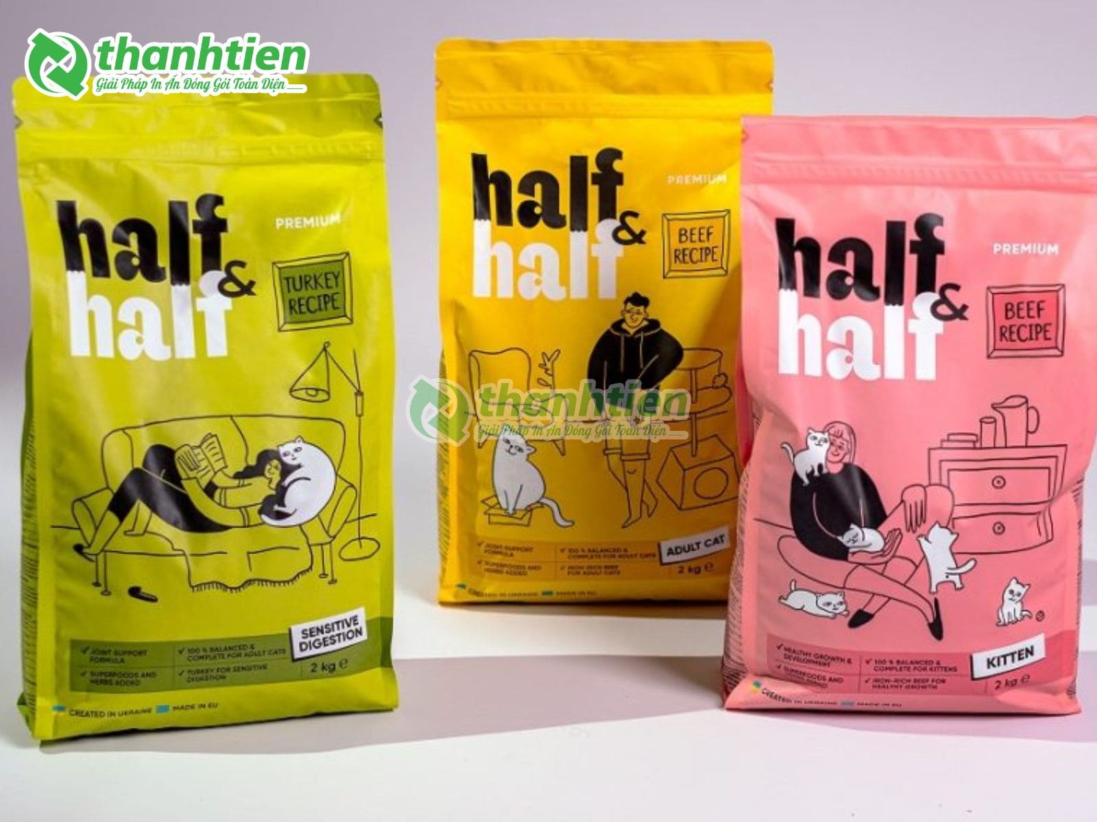 Nếu bạn đang tìm kiếm đối tác đáng tin cậy cho bao bì thức ăn thú cưng, Bao Bì Thành Tiến chính là lựa chọn hàng đầu. Với hơn 10 năm kinh nghiệm, xưởng sản xuất của chúng tôi tại Việt Nam được trang bị hệ thống máy móc hiện đại nhập khẩu từ châu Âu, chuyên sản xuất và in ấn bao bì đựng thức ăn thú cưng theo yêu cầu với giá cạnh tranh nhất thị trường. Chúng tôi sử dụng chất liệu cao cấp như màng ghép phức hợp an toàn thực phẩm, đảm bảo sản phẩm chống ẩm, giữ hương thơm và bền bỉ trong vận chuyển.