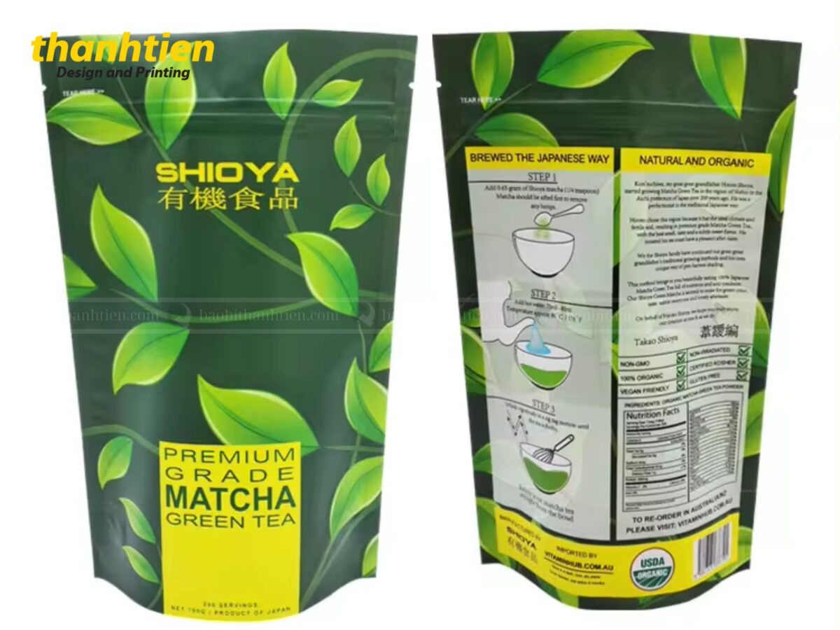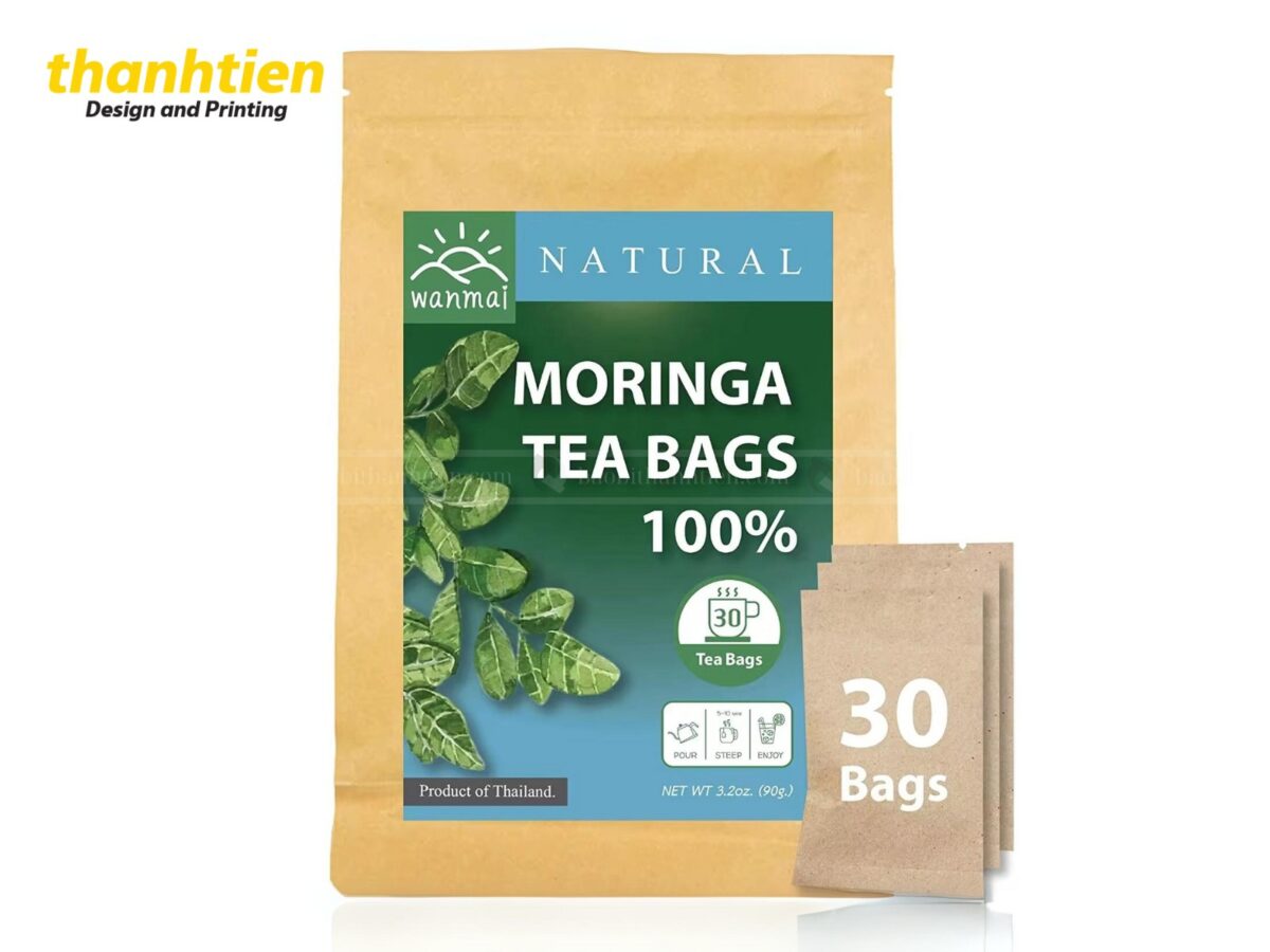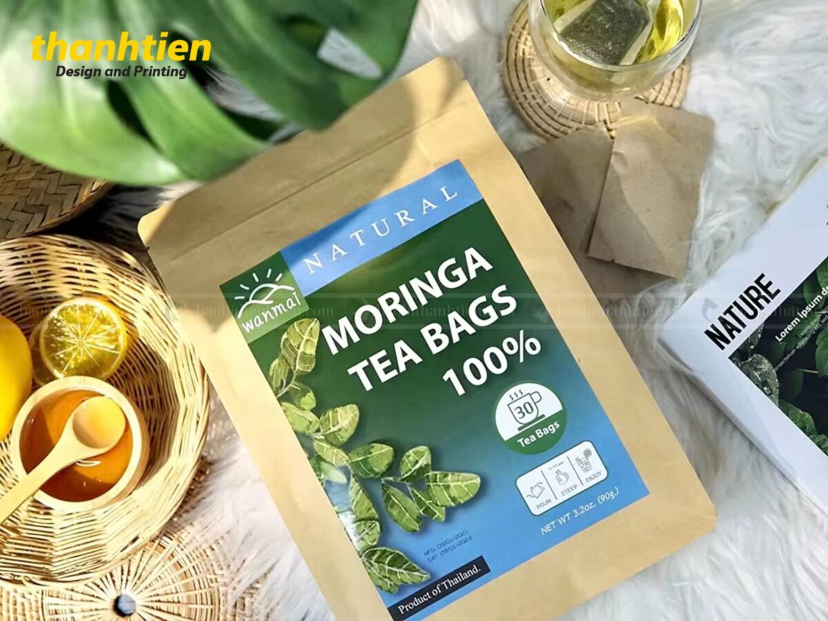 - Những thông tin in ấn trên bao bì trà bao gồm: thành phần, nguồn gốc, hướng dẫn sử dụng… giúp khách hàng sử dụng an tâm hơn.