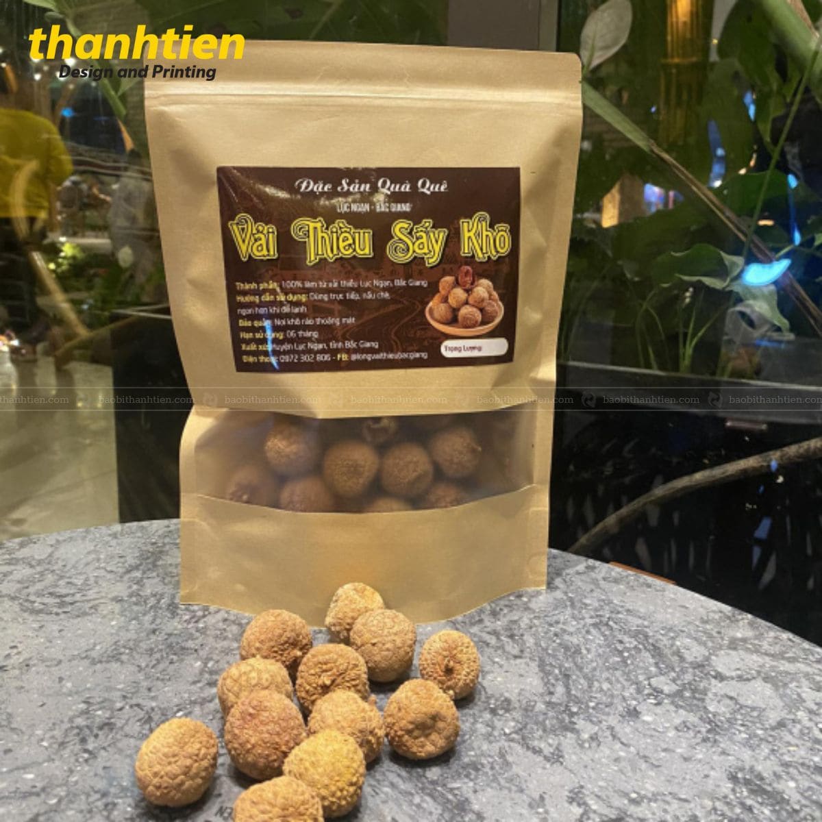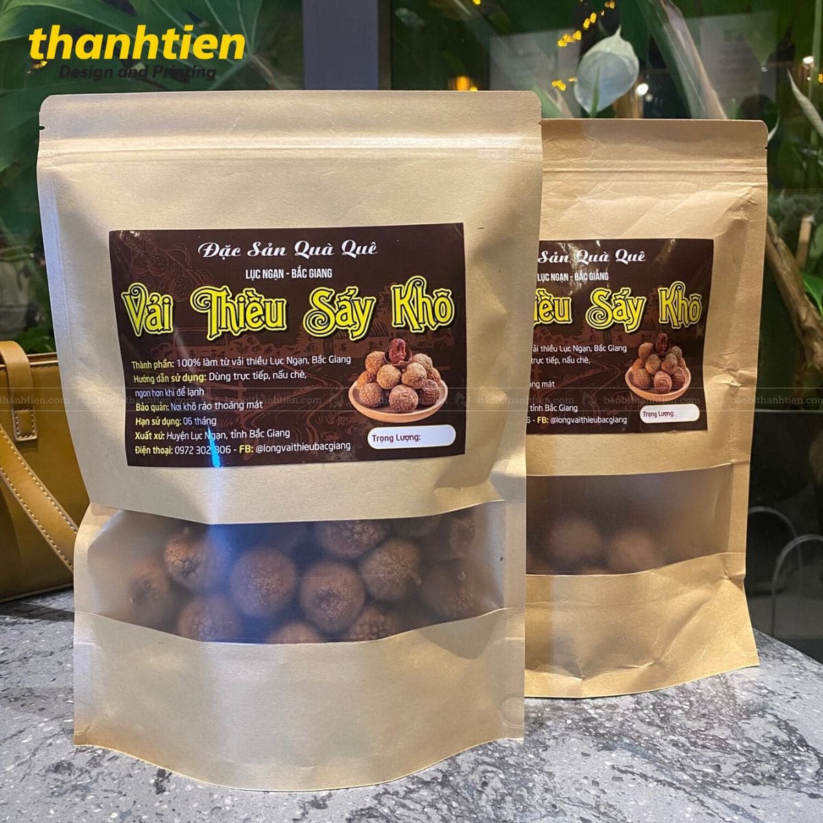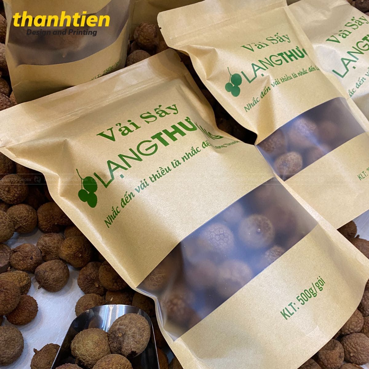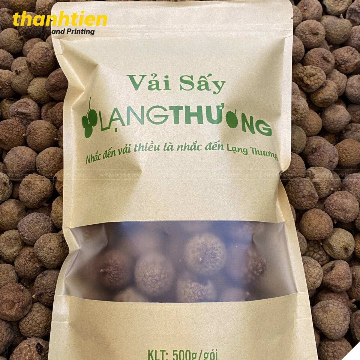 Bao bì giấy kraft đựng vải thiều sấy khô