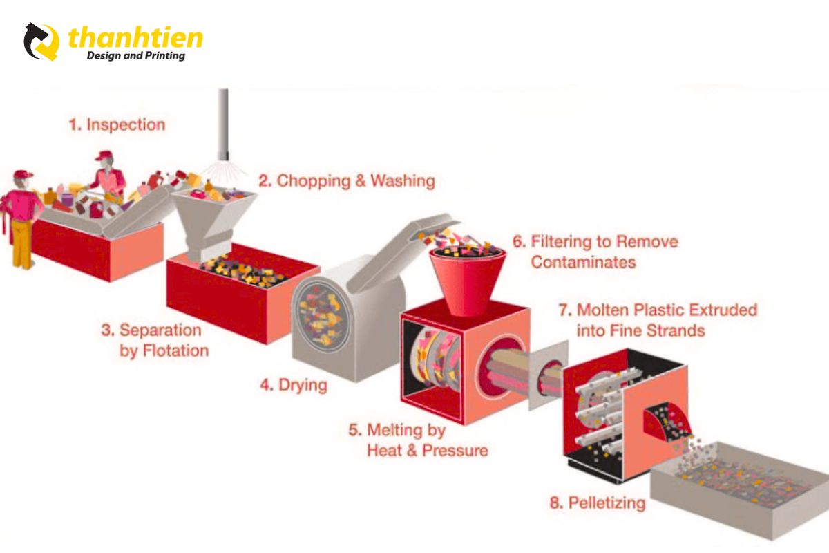 Tại Bao Bì Thành Tiến, chúng tôi áp dụng quy trình tái chế nhựa chuyên nghiệp, gồm 6 bước chính: