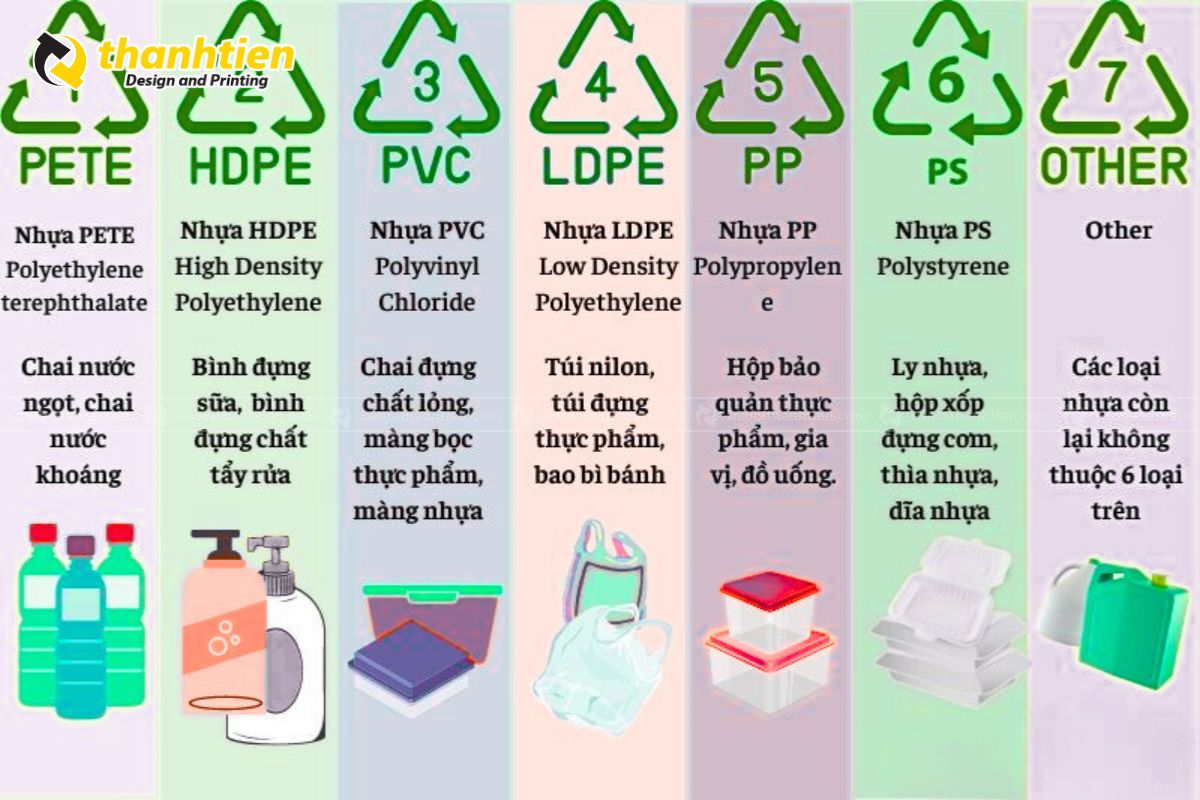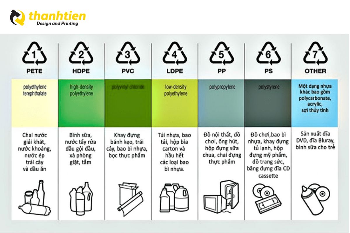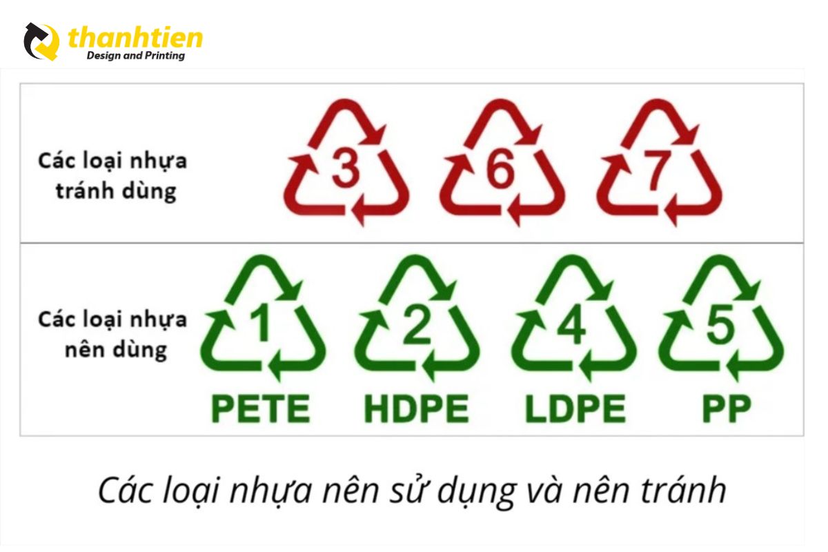 Những ký hiệu này thường được in dưới đáy hoặc trên thân sản phẩm nhựa, giúp người dùng và các cơ sở tái chế dễ dàng phân loại.