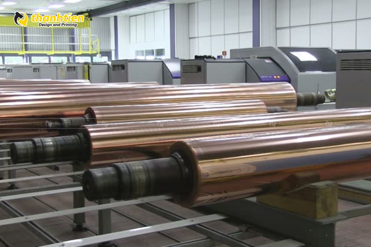 Trục in ống đồng được làm bằng thép mạ đồng với các phần tử in được khắc lên bề mặt mang lại độ chính xác cao trong quá trình in. Lớp mạ crôm bảo vệ không chỉ giúp tăng độ bền cho khuôn in mà còn đảm bảo rằng chất lượng in được duy trì qua nhiều lần tái bản.