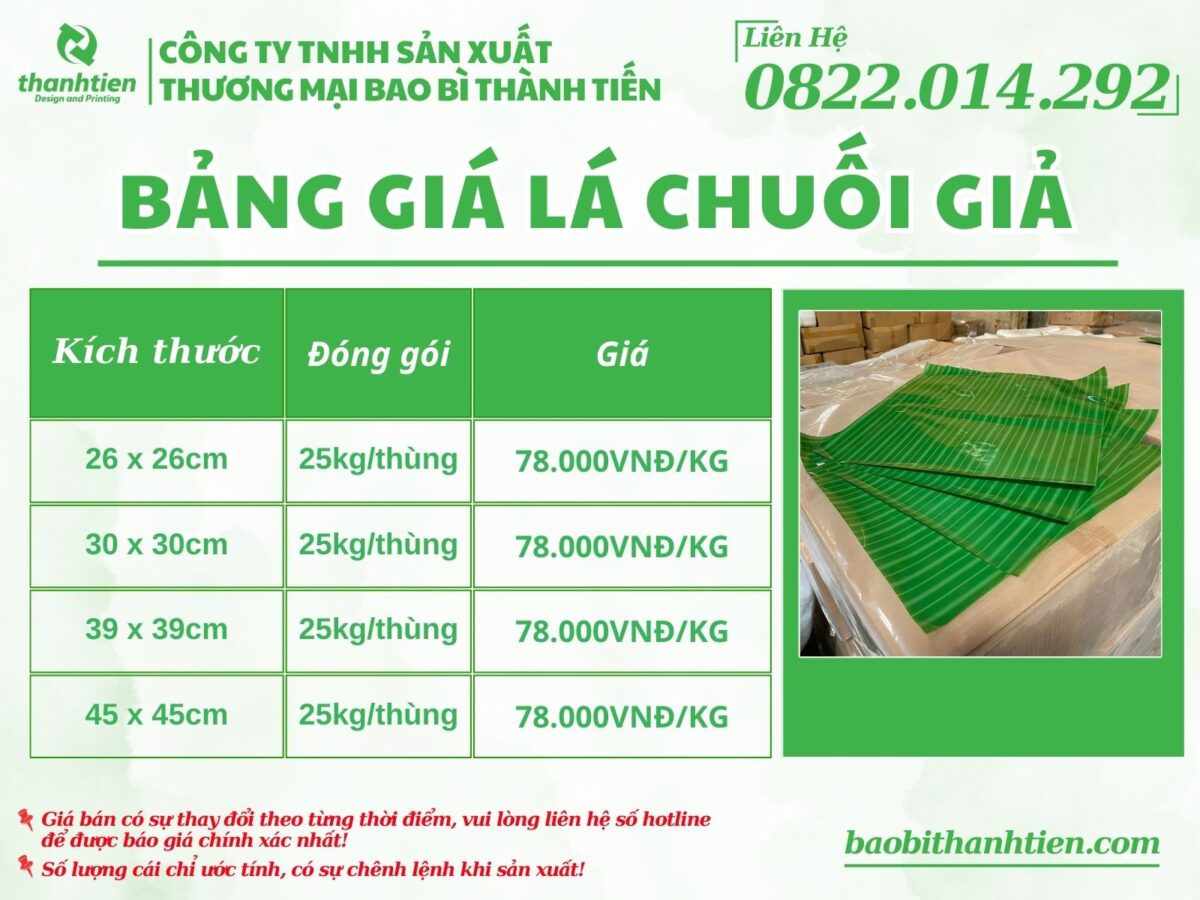 Bảng báo giá lá chuối giả tại Bao Bì Thành Tiến