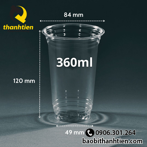 - Tên sản phẩm: Ly nhựa PET 360ml – 12 oz.