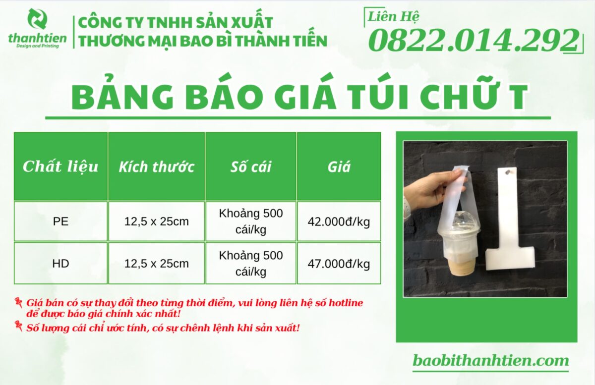 Bảng báo giá túi chữ T tại Bao Bì Thành Tiến