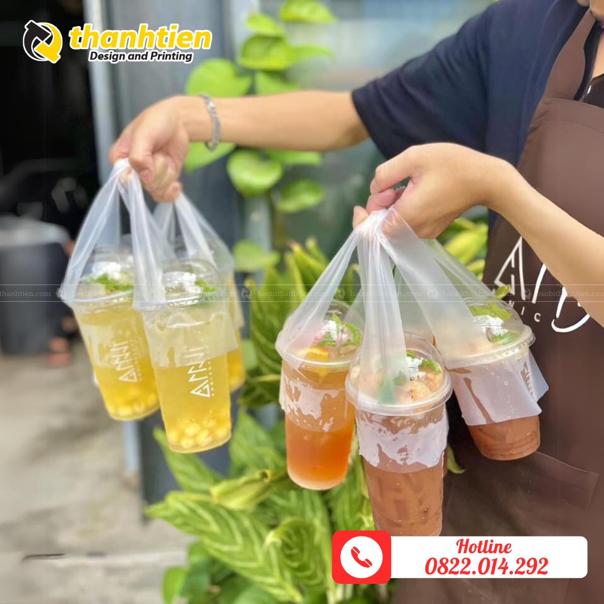Dưới đây là một số túi nilon chữ T đựng ly trà sữa, cà phê mà Bao Bì Thành Tiến đã sản xuất và in ấn cho các cửa hàng, quán nước.