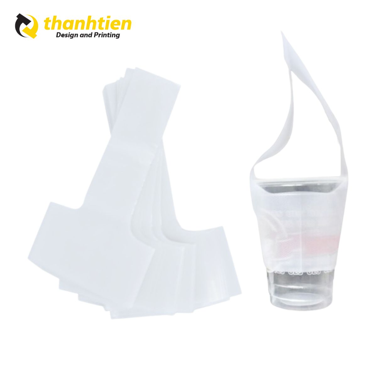 In ấn logo thương hiệu lên túi chữ T đựng ly