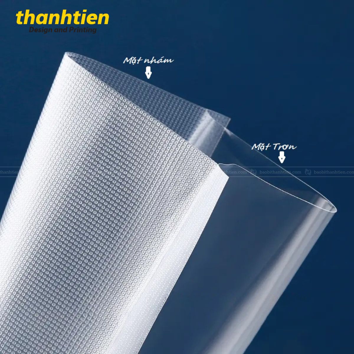 Túi hút chân không 1 mặt nhám là giải pháp tối ưu cho việc bảo quản thực phẩm, giúp giữ cho thực phẩm tươi ngon, an toàn và kéo dài thời hạn sử dụng. Được làm từ chất liệu nhựa PA/PE cao cấp, túi hút chân không một mặt nhám có độ bền cao, chống thấm nước, thoát khí hiệu quả, ngăn ngừa vi khuẩn và nấm mốc xâm nhập. Hãy cùng Thành Tiến tìm hiểu chi tiết về ưu điểm, công dụng và giá bán của loại túi này nhé!