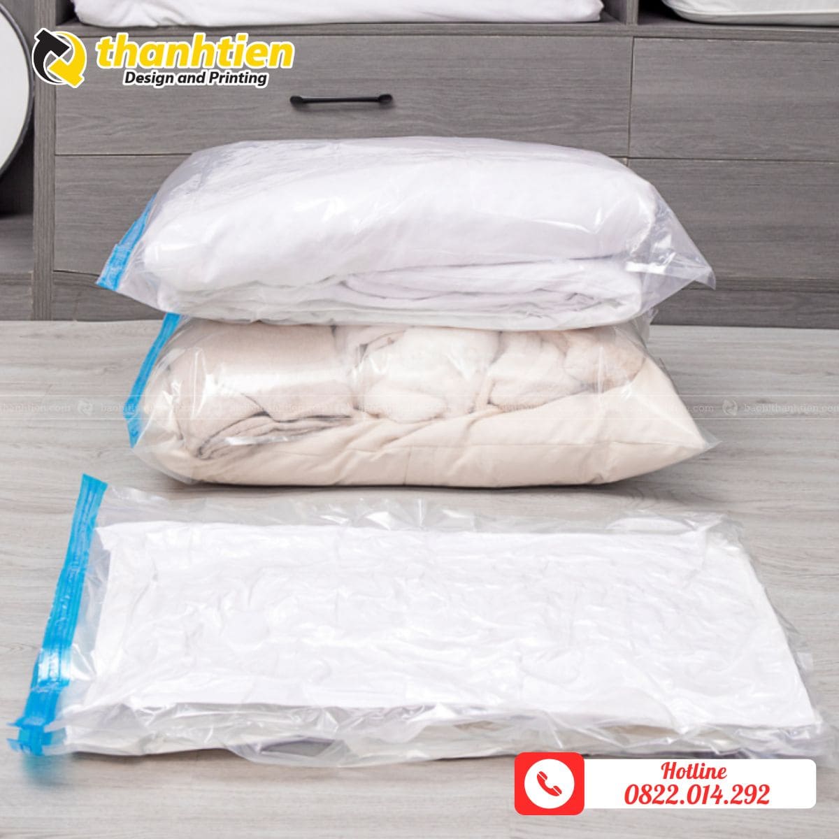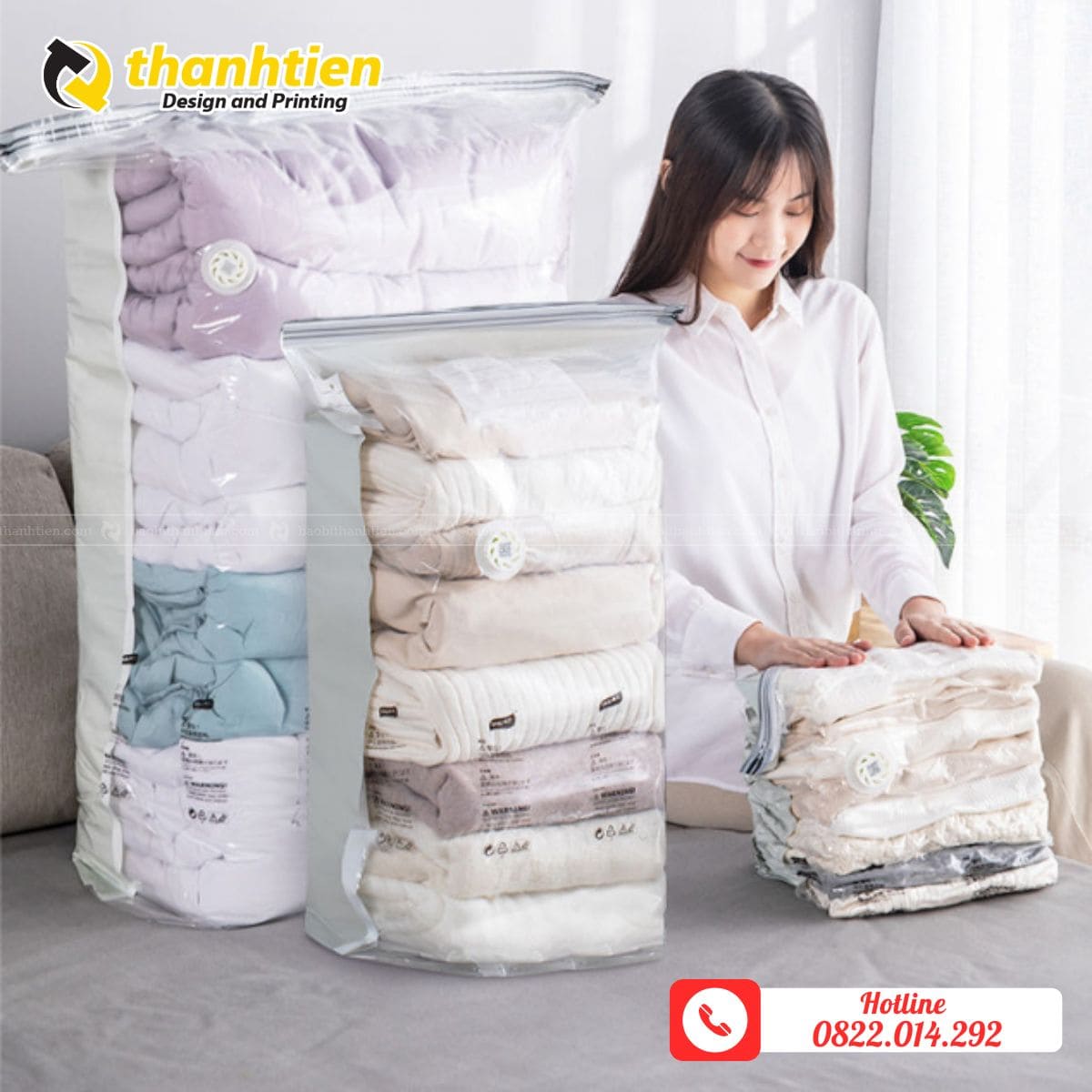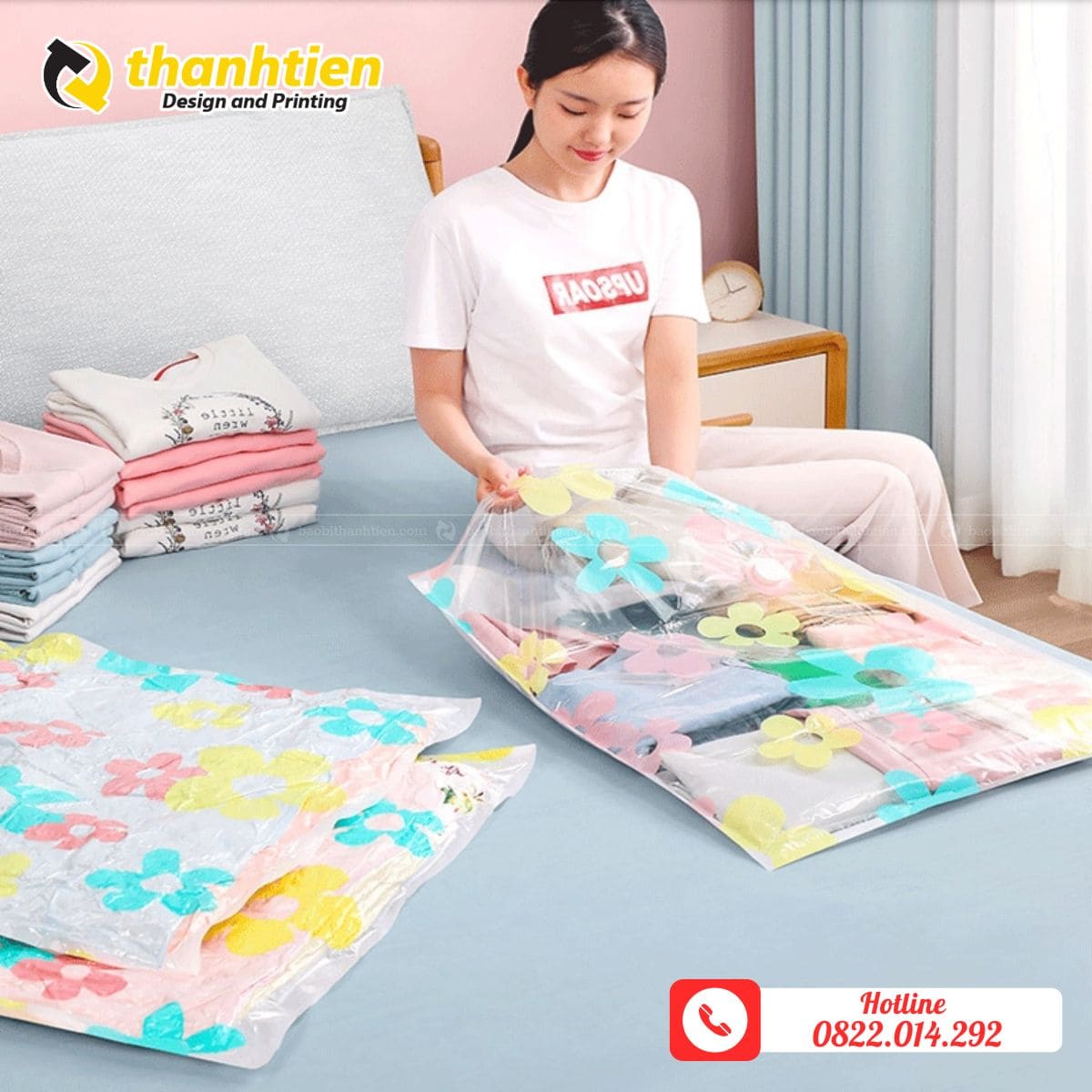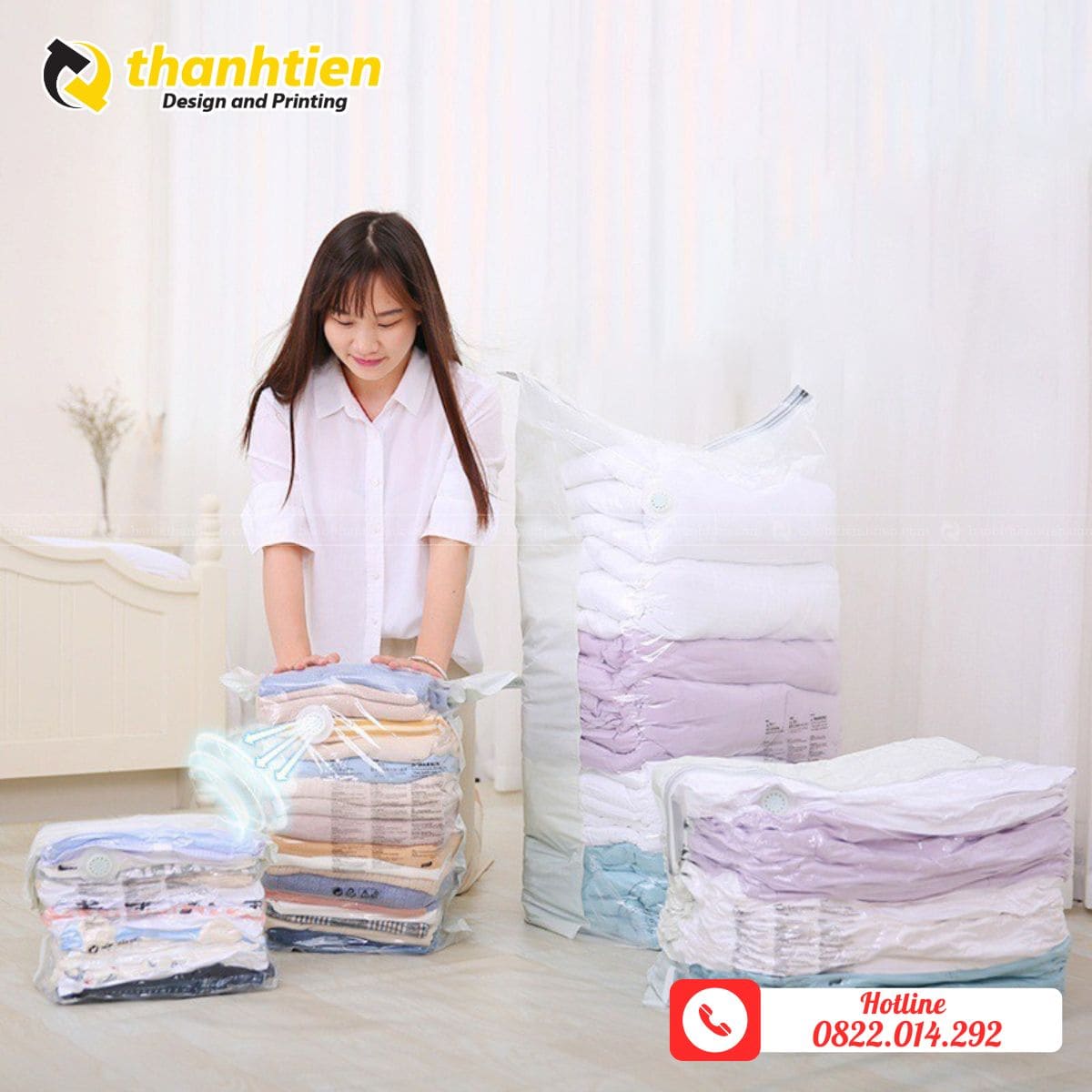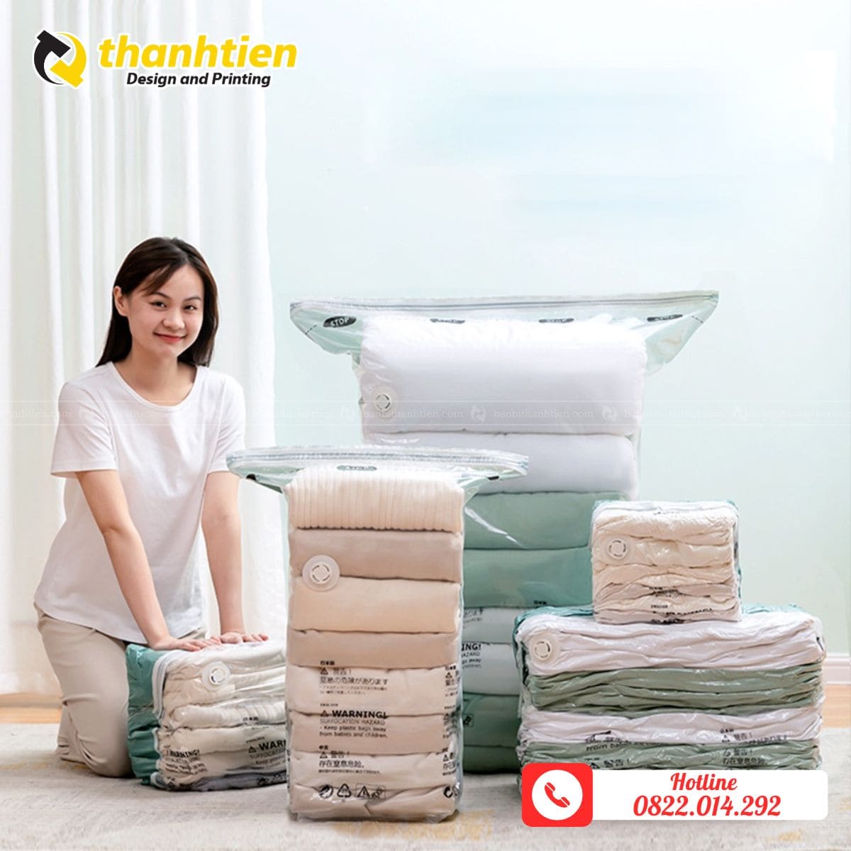 5. Sản Xuất Theo Yêu Cầu: Bao Bì Thành Tiến nhận sản xuất túi hút chân không đựng quần áo theo kích thước, màu sắc và in ấn logo theo yêu cầu của khách hàng. Đây là lựa chọn lý tưởng cho các doanh nghiệp hoặc cá nhân muốn cá nhân hóa sản phẩm.
