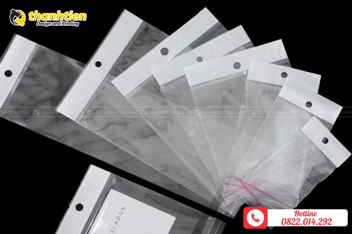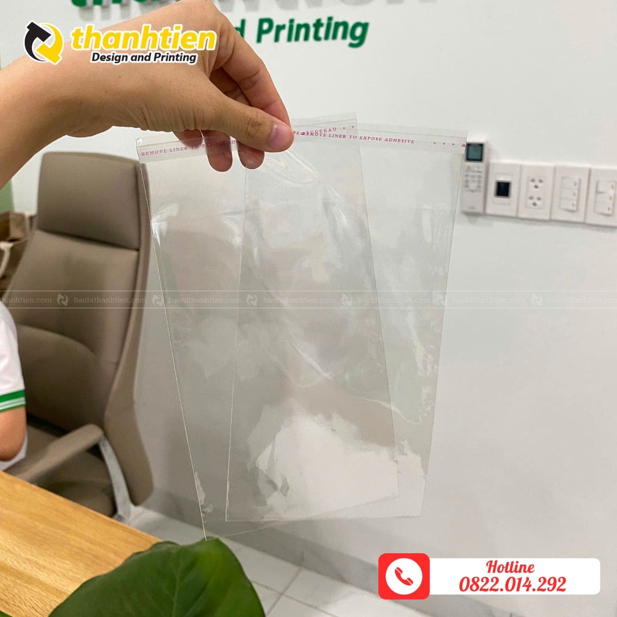 Túi OPP dán miệng là loại túi trong suốt có thể nhìn thấy sản phẩm bên trong, nó có thêm một lớp keo mỏng ở phía trên miệng túi. Túi thường dùng để đựng thực phẩm, tài liệu, đựng quần áo và dùng để đựng linh kiện điện tử hay văn phòng phẩm.