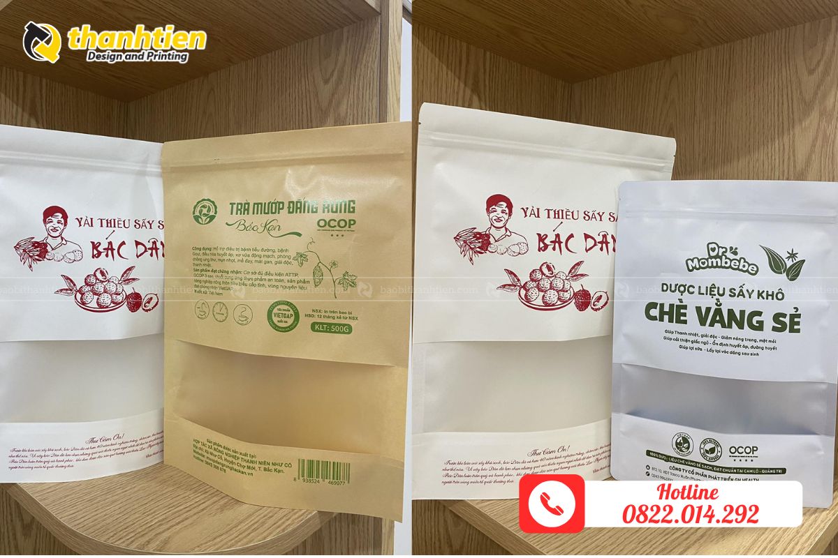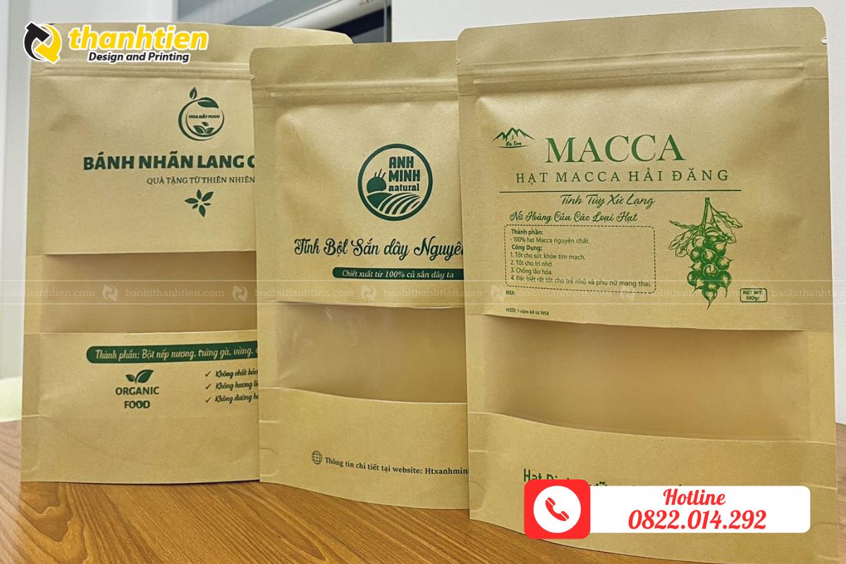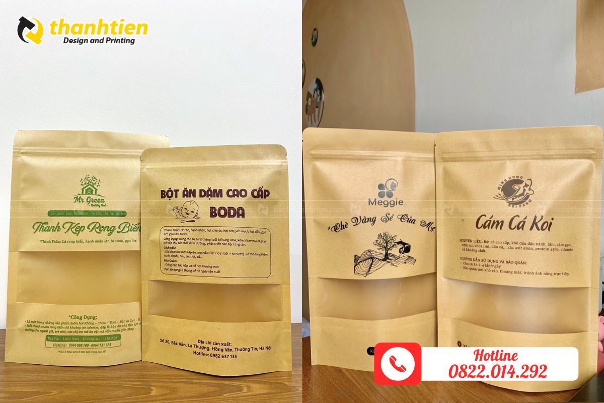 Túi zipper giấy kraft không chỉ là bao bì mà còn là công cụ quảng bá thương hiệu hiệu quả. Dưới đây là một số mẫu túi nổi bật tại Bao Bì Thành Tiến: