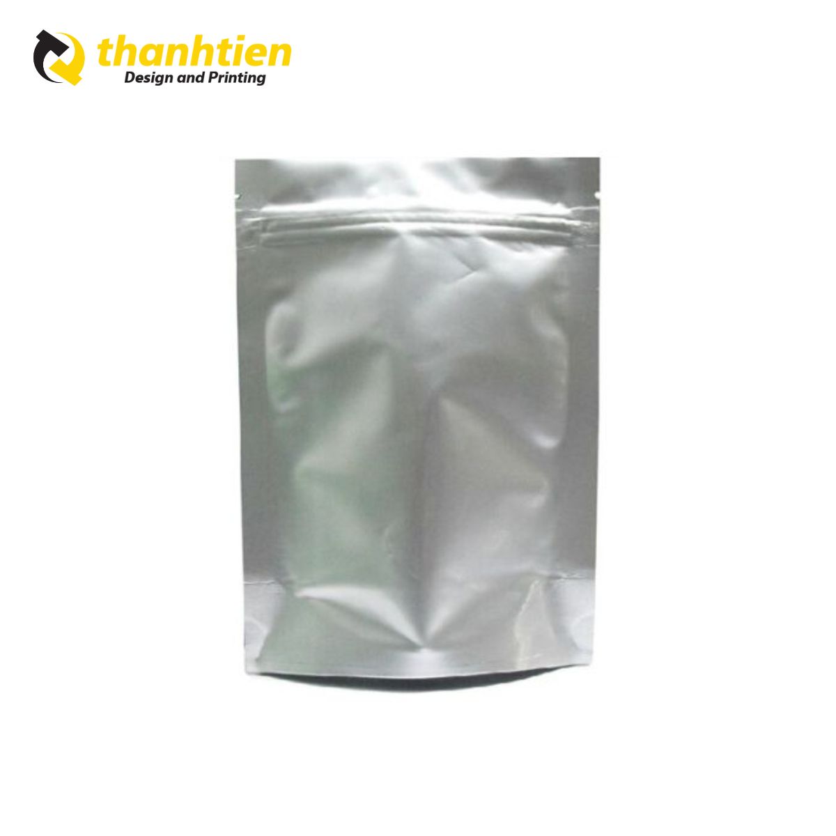 Túi zipper bạc được làm từ màng ghép phức hợp, có độ dày cao và khả năng chống ẩm, chống khí vượt trội. Loại túi này thường được sử dụng để bảo quản các sản phẩm như bột cà phê, hạt điều, hoặc thực phẩm chức năng. Thiết kế đáy đứng giúp túi đứng vững trên kệ, tăng tính thẩm mỹ cho sản phẩm.