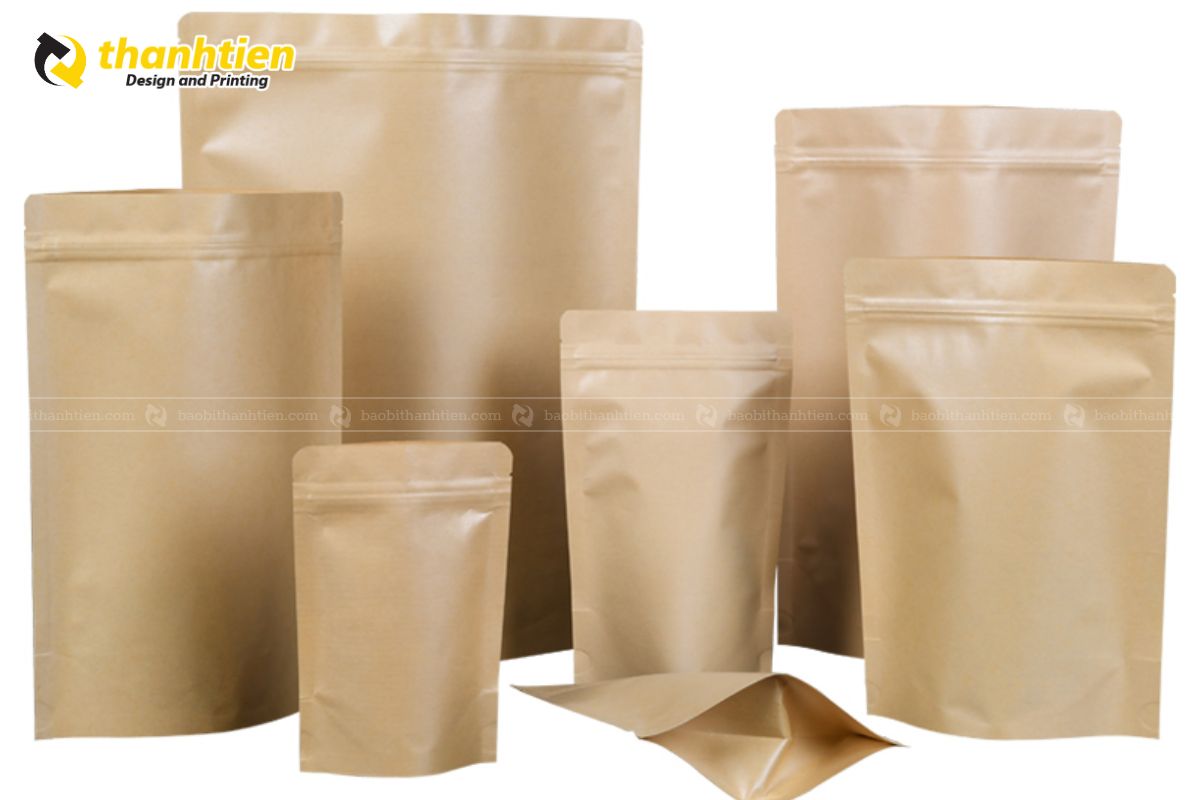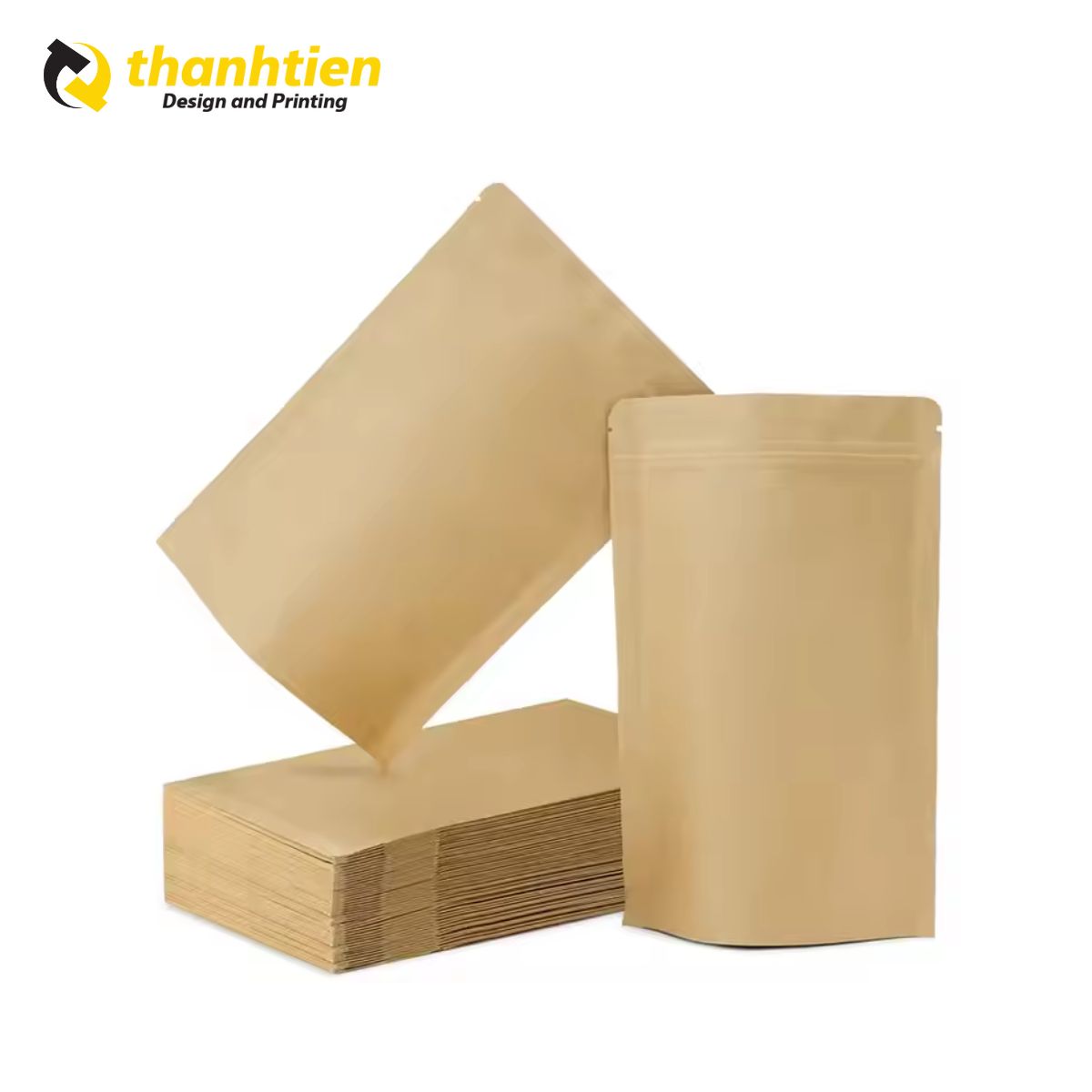 Với lớp ngoài làm từ giấy kraft thân thiện môi trường, túi zipper giấy kraft mang đến vẻ ngoài sang trọng và hiện đại. Loại túi này phù hợp cho các sản phẩm cao cấp như trà, cà phê, hoặc đồ ăn nhẹ. Bề mặt giấy kraft dễ dàng in ấn logo và thông tin thương hiệu, giúp nâng tầm giá trị sản phẩm.