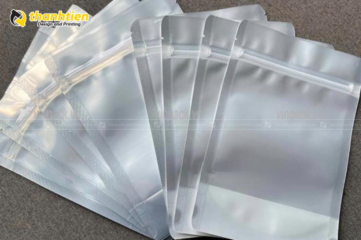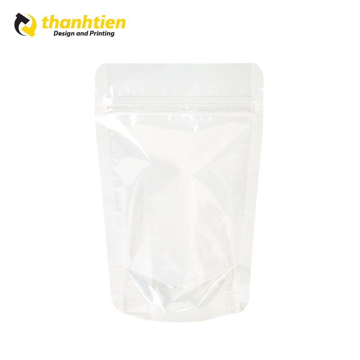Điểm nổi bật của túi zipper trong suốt là thiết kế hai mặt trong, cho phép khách hàng dễ dàng nhìn thấy sản phẩm bên trong. Túi có đáy đứng vững chắc, phù hợp để trưng bày thực phẩm khô, trái cây sấy, hoặc đồ uống đóng gói. Chất liệu nhựa cao cấp đảm bảo độ bền và an toàn thực phẩm.